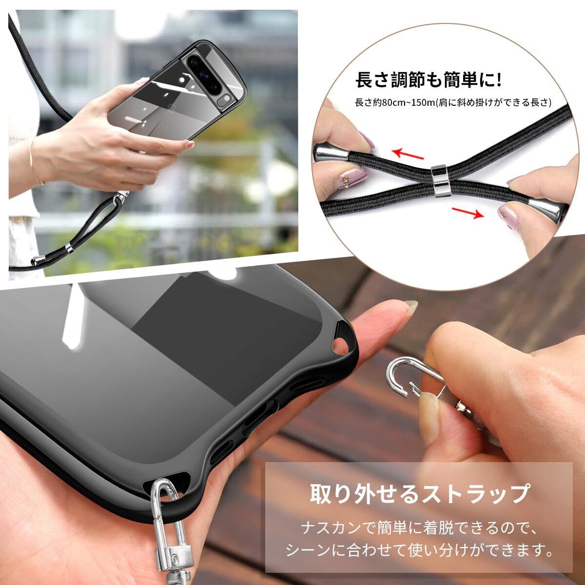 Google Pixel 8 Pro ケース クリア ショルダー ストラップ付き グーグル ピクセル8 プロ カバー 透明 肩掛け 縄掛け 斜めかけ TPU メッキ加工 耐衝撃 全面保護 薄型 韓国 可愛い Pixel 8 Pro スマホケース (ブラック) | BASE SHOP