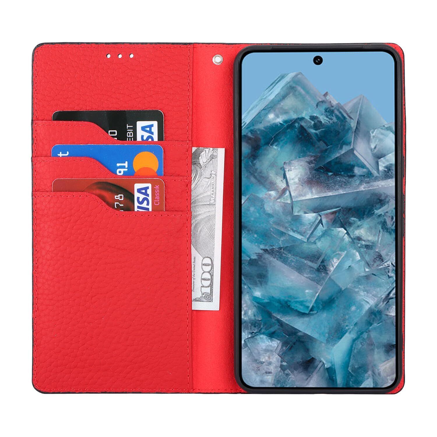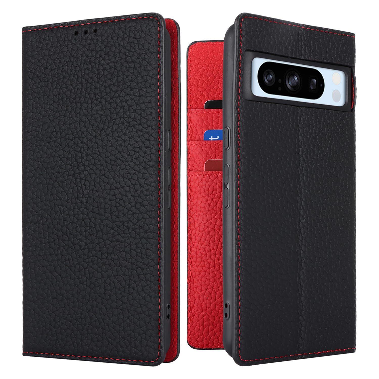 Eastwave for Pixel 8 Pro ケース 本革 牛革 for google pixel8 pro ケース 手帳型 for pixel 8pro カバー Case 手帳 本革 柔らかい 本皮 スプラットホール付き スプラット同梱 内蔵マグネット - ブラック