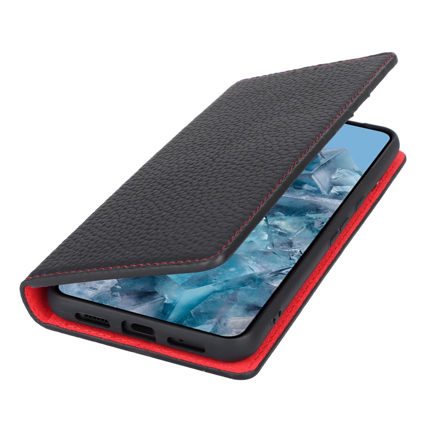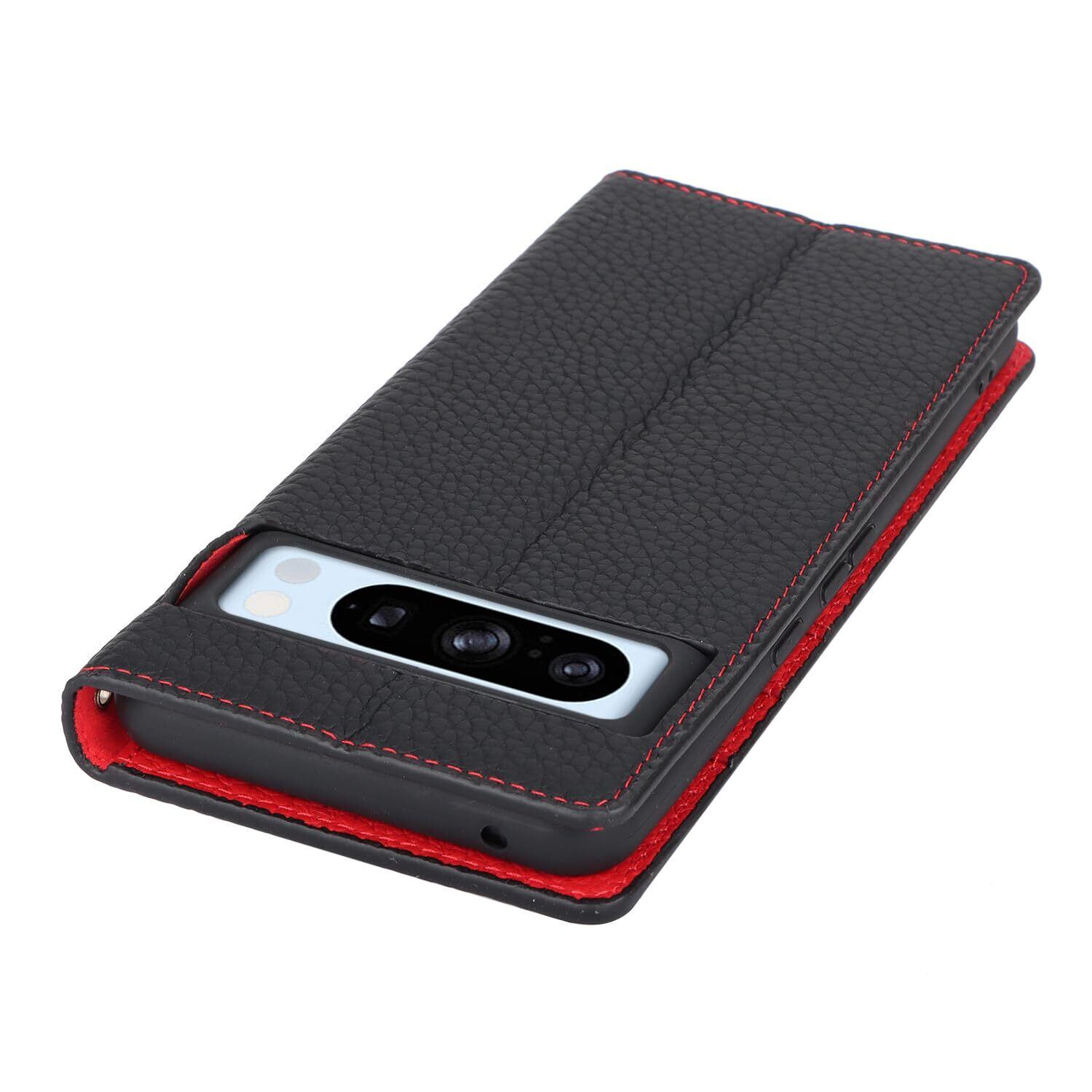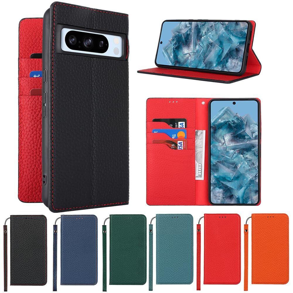 for Pixel 8 Pro ケース 本革 牛革 for google pixel8 pro ケース 手帳型 for pixel 8pro カバー Case 手帳 本革 柔らかい 本皮 スプラットホール付き スプラット同梱 内蔵マグネット - ブラック