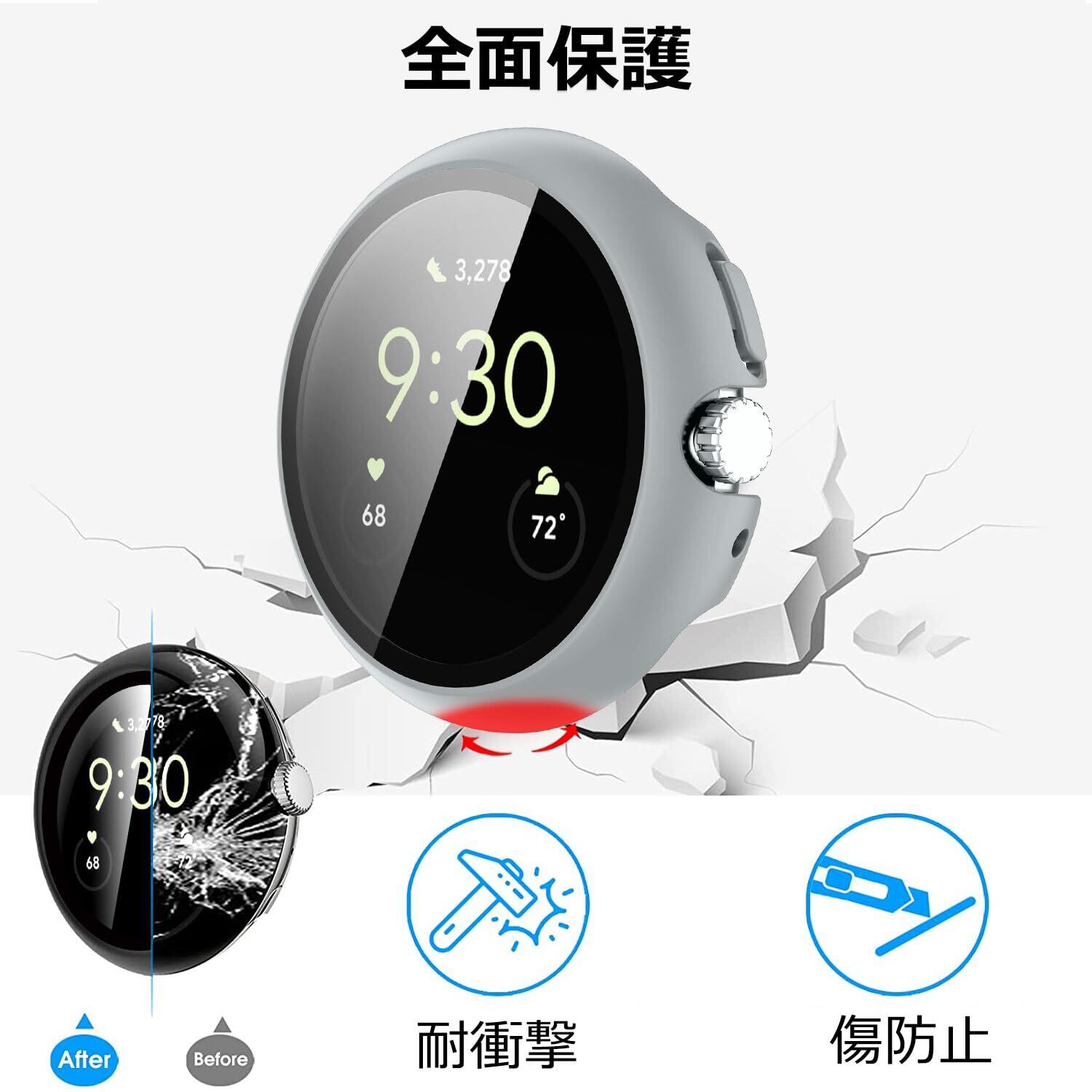 「タッチ感度良好」Pixel Watch 2/1 の操作性を損ねない、こだわり抜いた究極的な設計。操作性を追求し、最も適したサイズに作られております。各ボタン部分への操作性、アクセスしやすさを考慮した最適な設計。