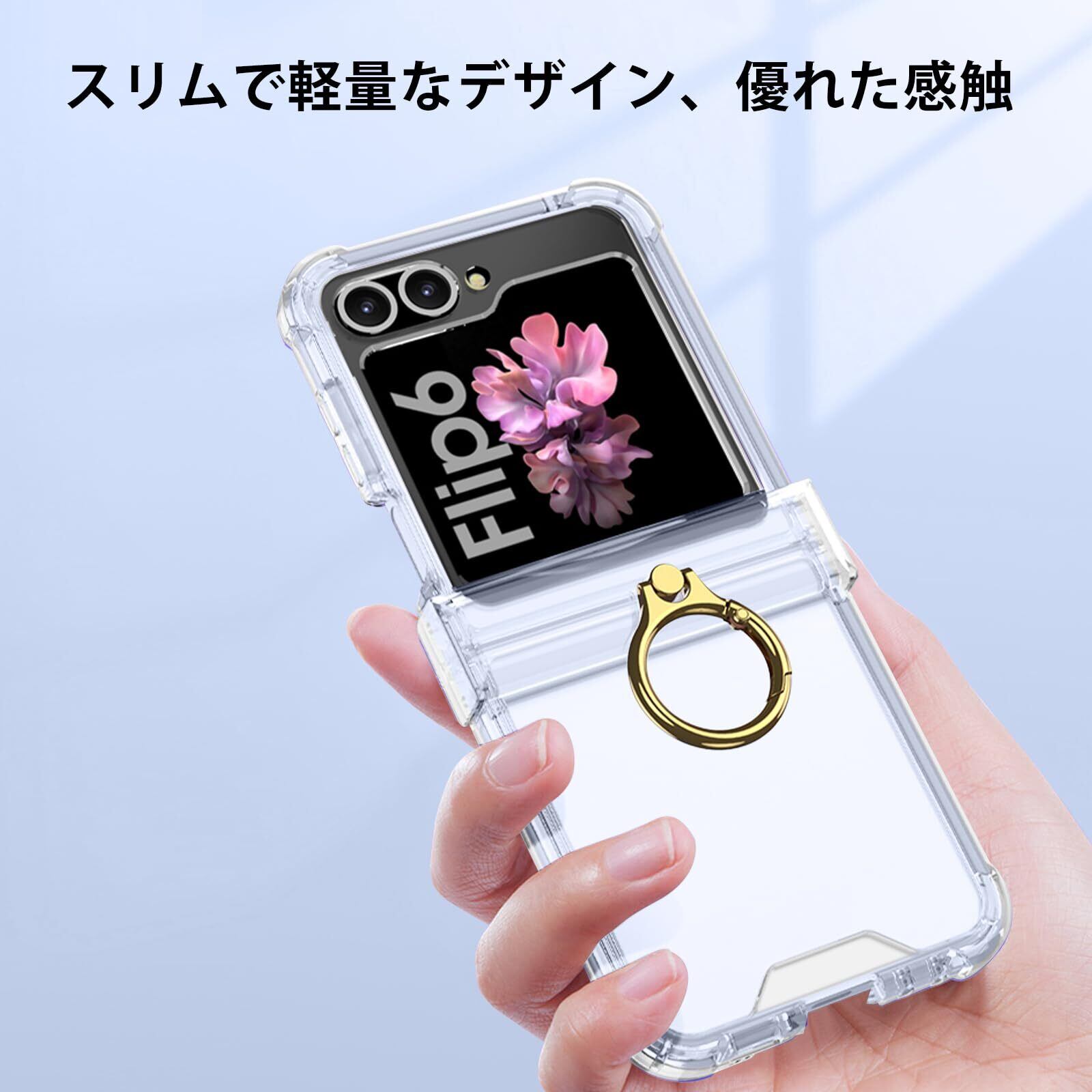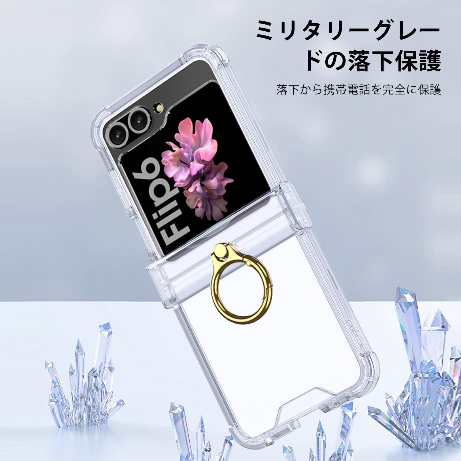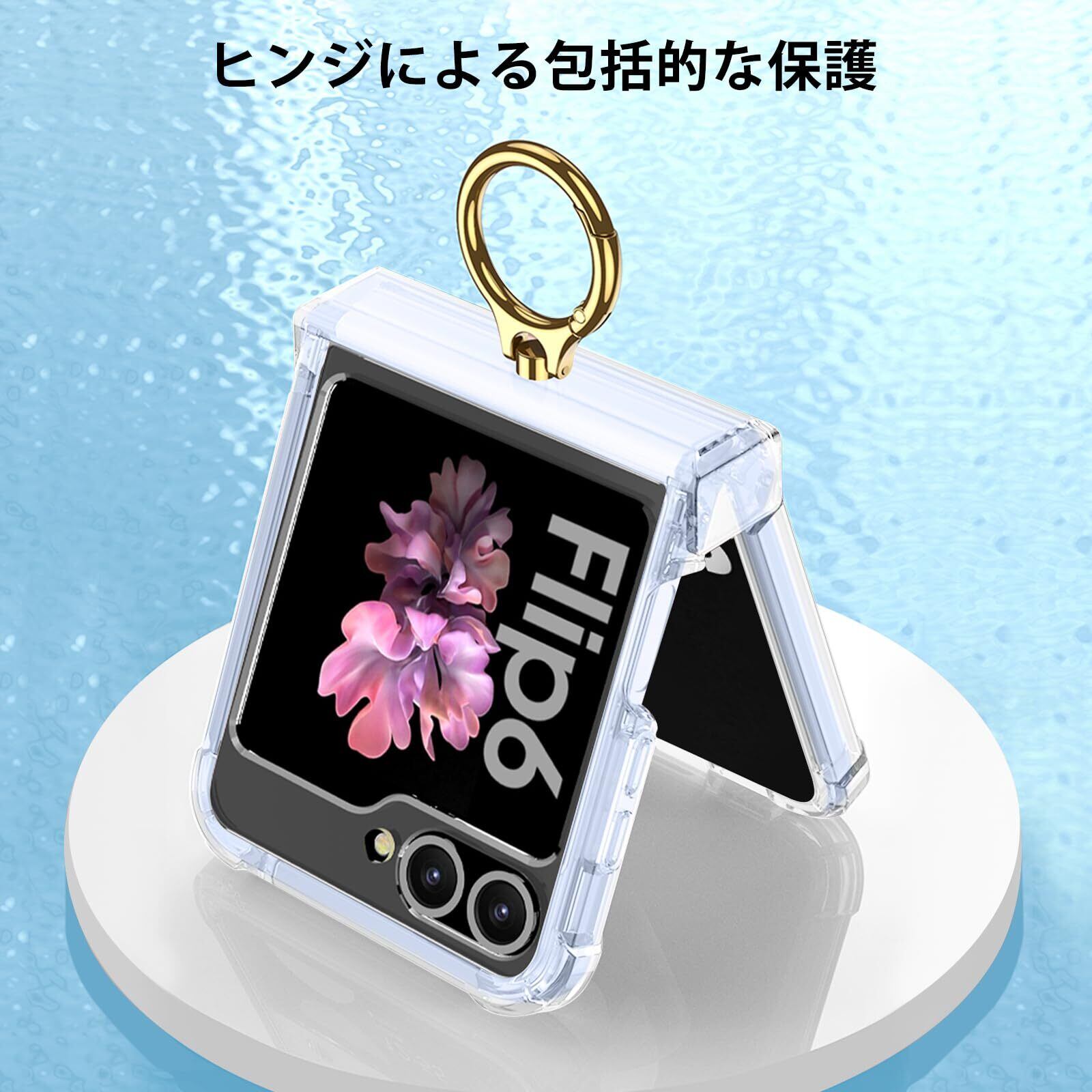 FODDOM Galaxy z flip6ケース Flip6リングケース Galaxy Z Flip6ケース 純正 リング付き 折りたたみ ヒンジ保護 Flip6case ギャラクシーz フリップ6ケース 薄型 全身保護 擦り傷防止 耐衝撃 おしゃれケース (クリア)