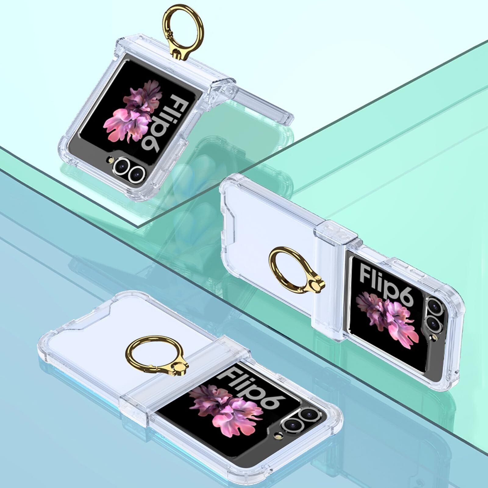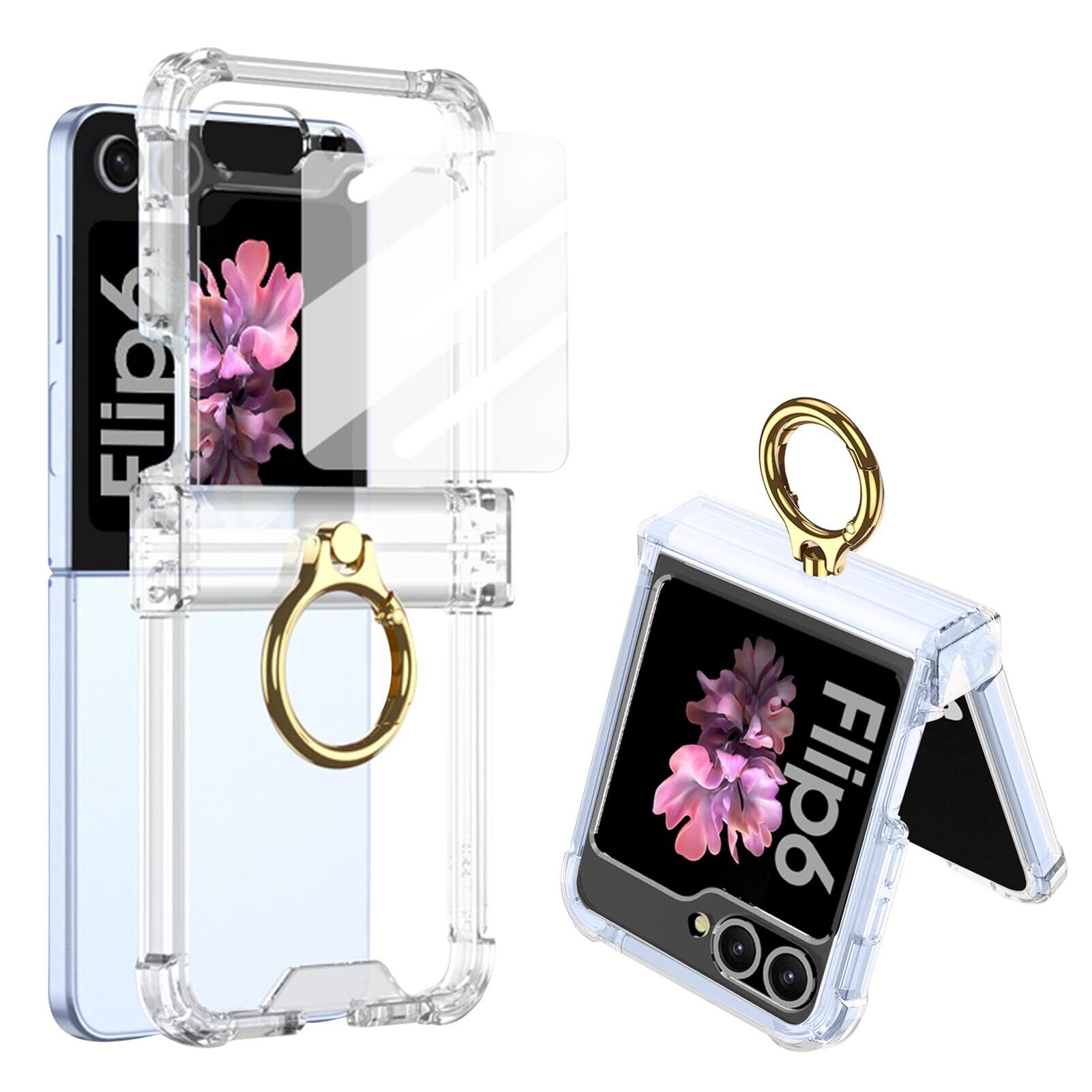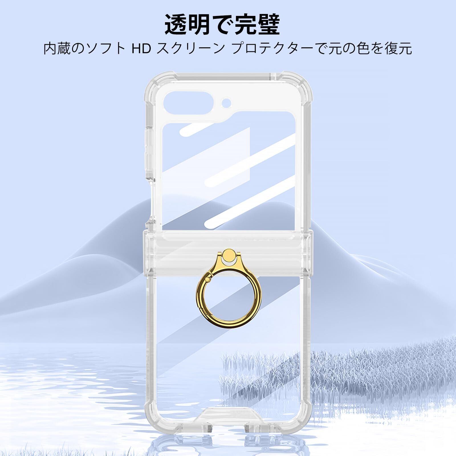 FODDOM Galaxy z flip6ケース Flip6リングケース Galaxy Z Flip6ケース 純正 リング付き 折りたたみ ヒンジ保護 Flip6case ギャラクシーz フリップ6ケース 薄型 全身保護 擦り傷防止 耐衝撃 おしゃれケース (クリア)