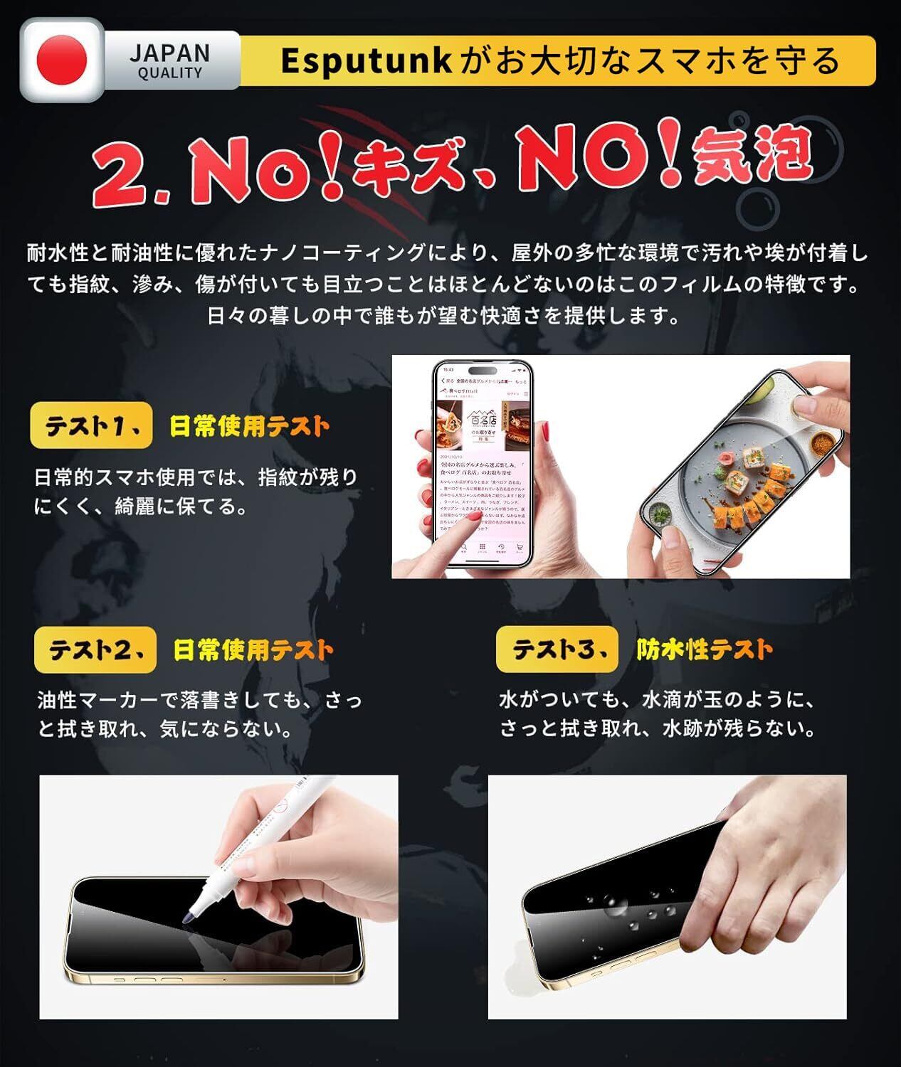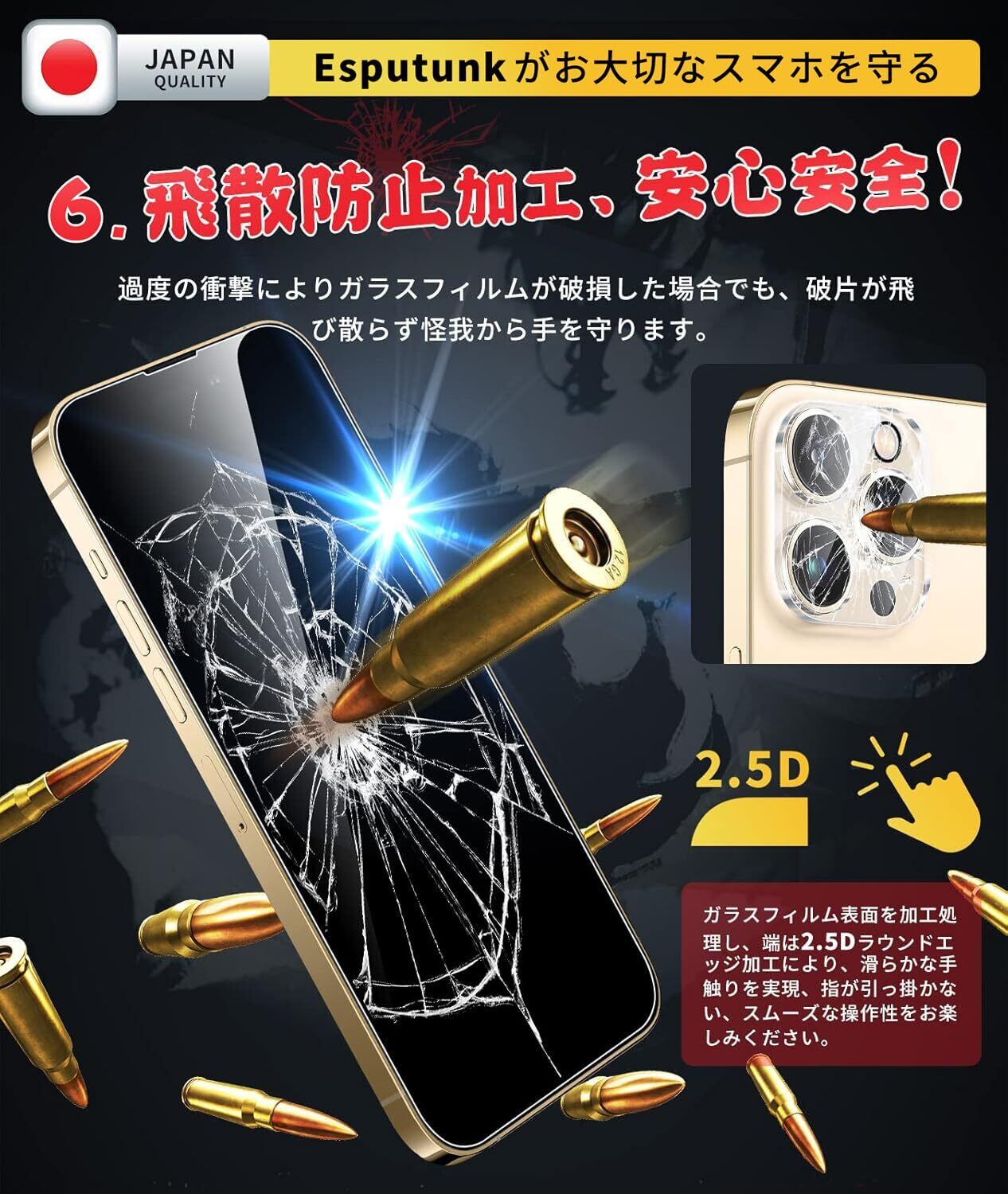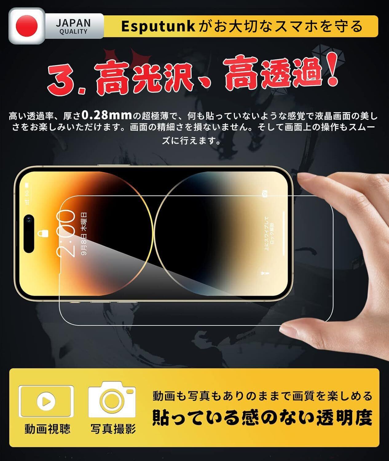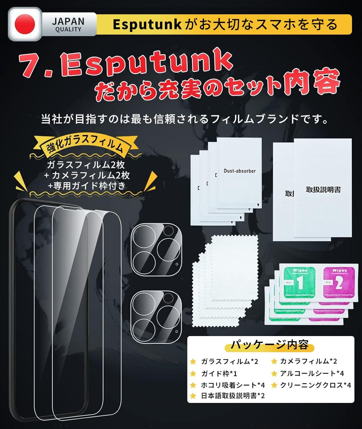 【必ずお読みください】:iPhone14 Pro対応ガラスフィルム+カメラフィルム+ガイド枠4枚セットです。新品iPhoneに保護を提供いただき、別に買うために行く必要はございません。ご希望の数は在庫数上の場合はどうぞ弊店にてお問い合わせください。【Esputunk製品保証の概要】:永久保証について、製品に不具合が生じた場合は、お客様からのお問い合わせ内容に応じて代替品交換・返金対応を提供致します。(お一人様につき1回限り)