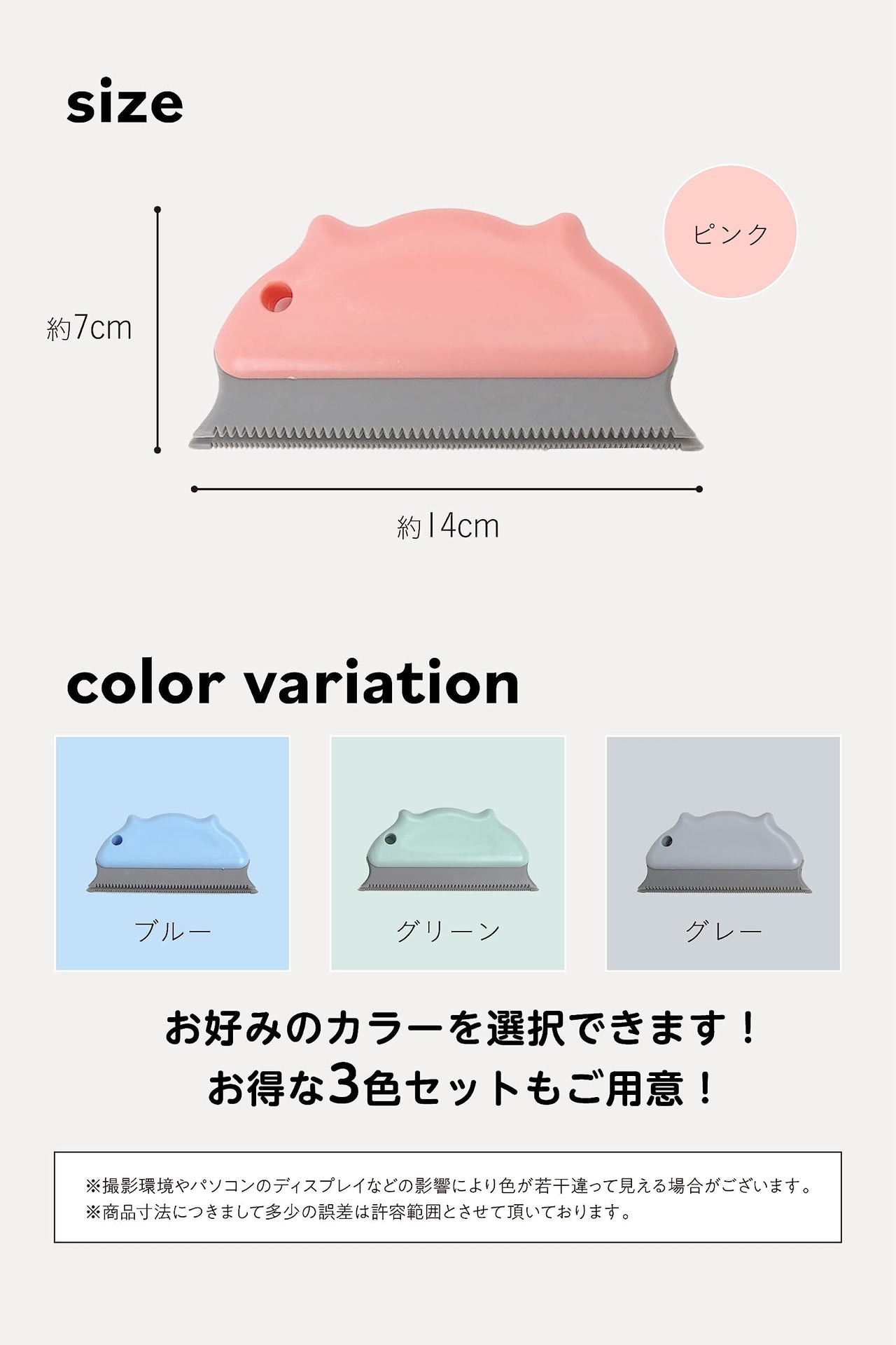 【お手入れ専用ブラシ】掃除機でも粘着テープでも取りずらい抜け毛や毛玉をギザギザ形鋸状ゴムでかき出し集めることができる手のひらサイズのブラシです。ブラシの歯の細かさは2種類あり、長毛でも短毛でもやさしい力でかき集めることができます。電源や電池を使用しないため音や振動もなく、深夜や早朝などの時間でも周囲をきにせずお手入れができます。