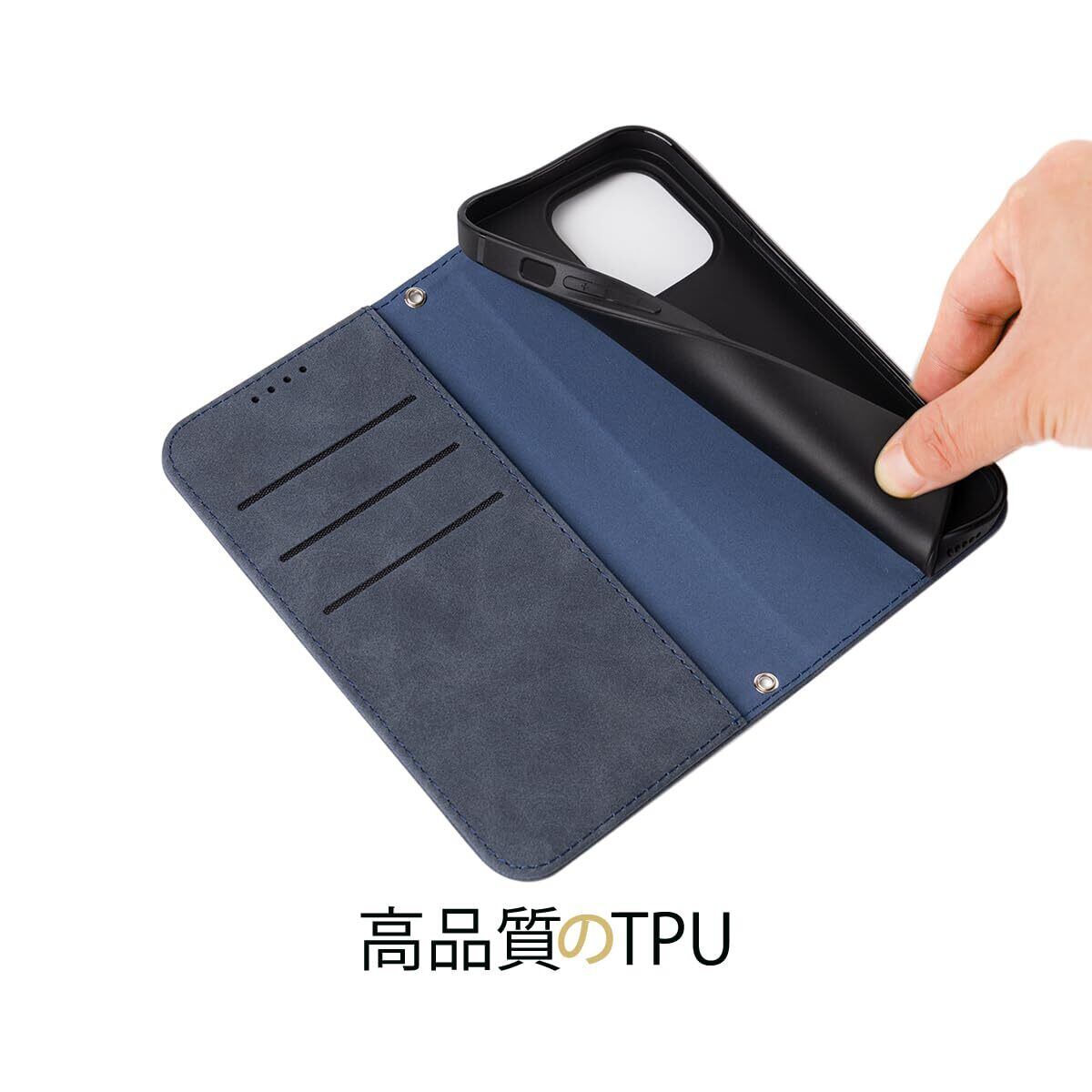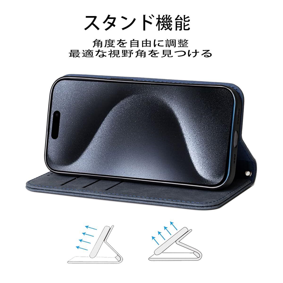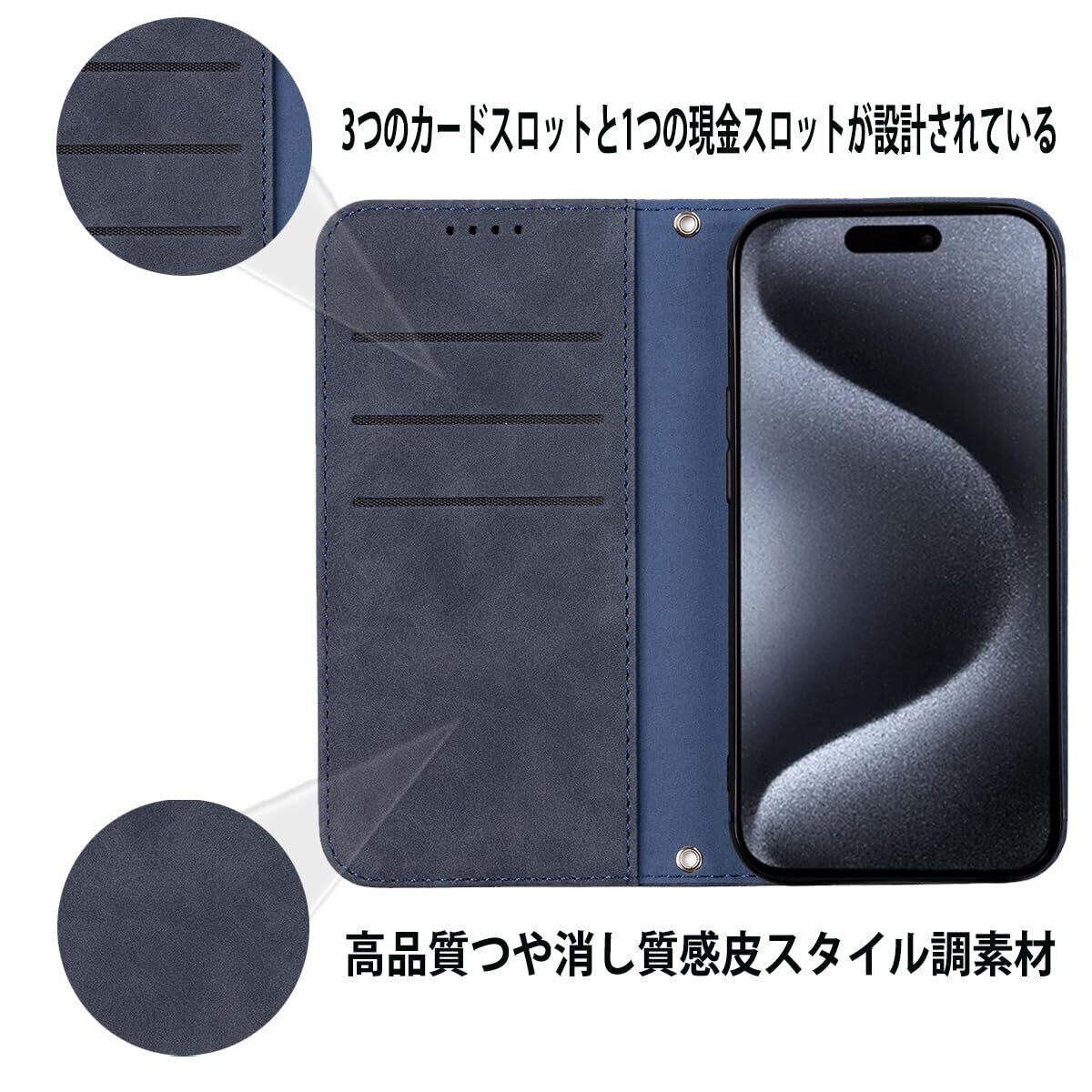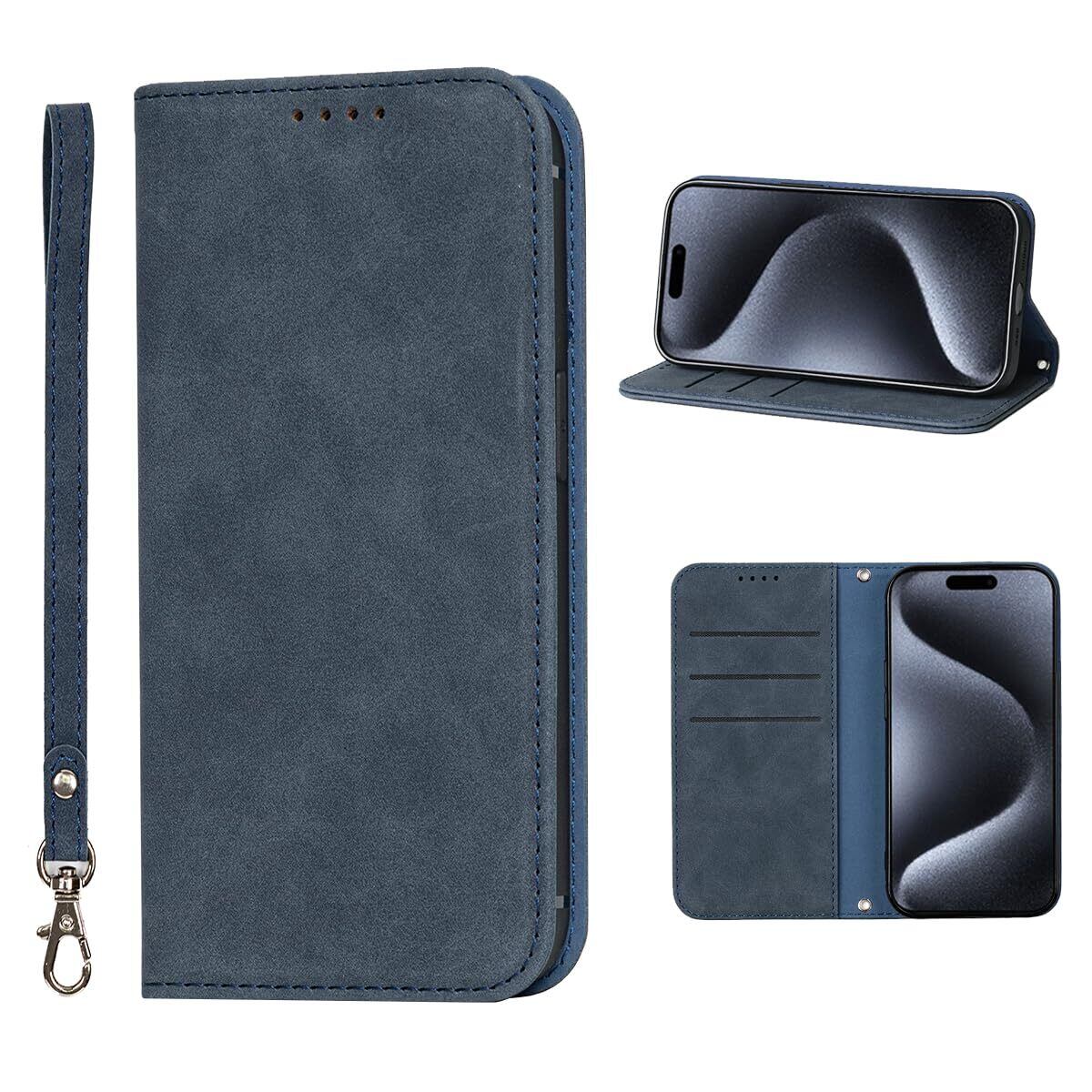 NanHou iPhone 15 Pro ケース 手帳型 つや消し レザー スタイル質感 カバー 手帳型 耐衝撃 保護カバー 内蔵マグネット 財布型 携帯カバー カードポケット スタンド機能 リストバンド iPhone15 Pro 手帳型 - ダークブルー