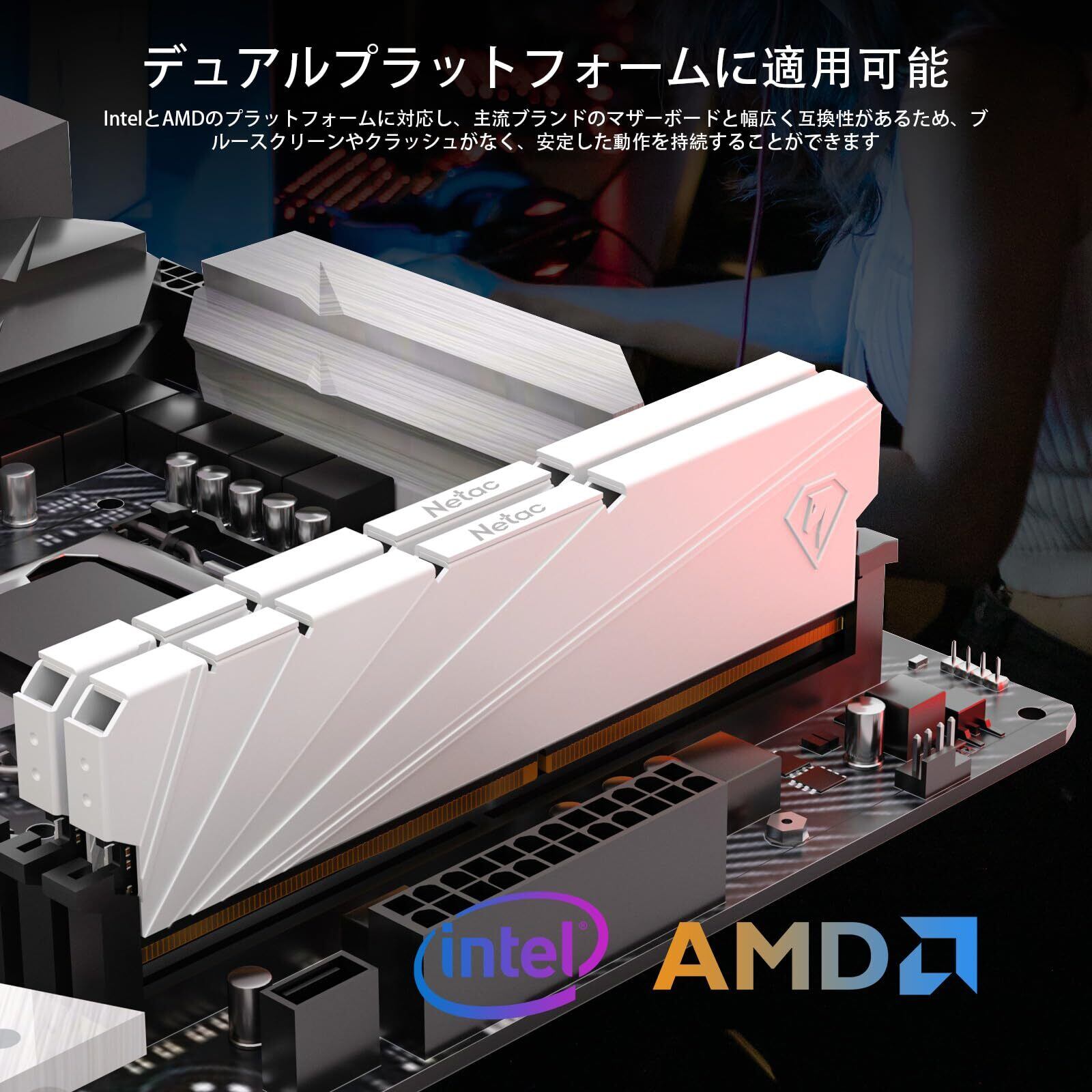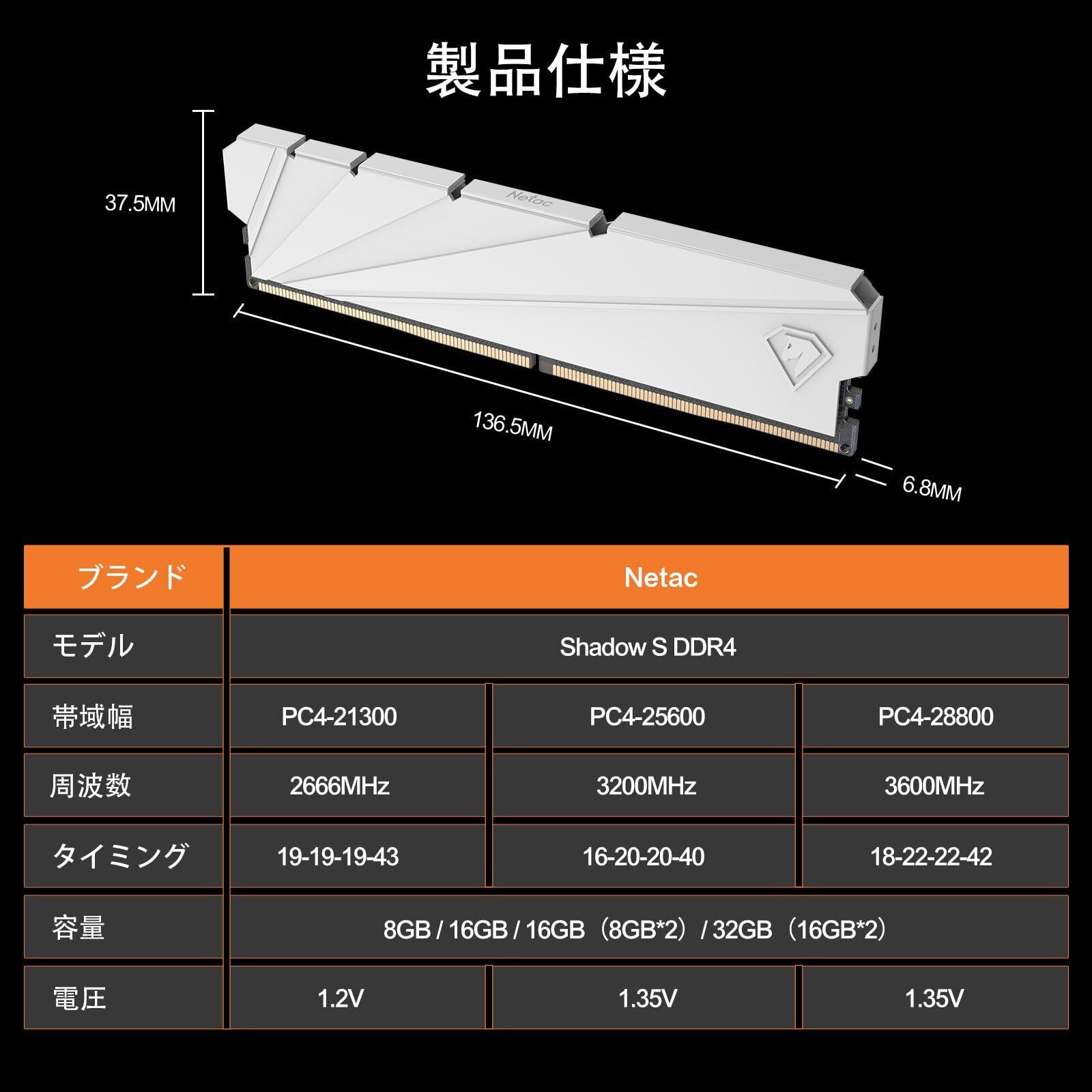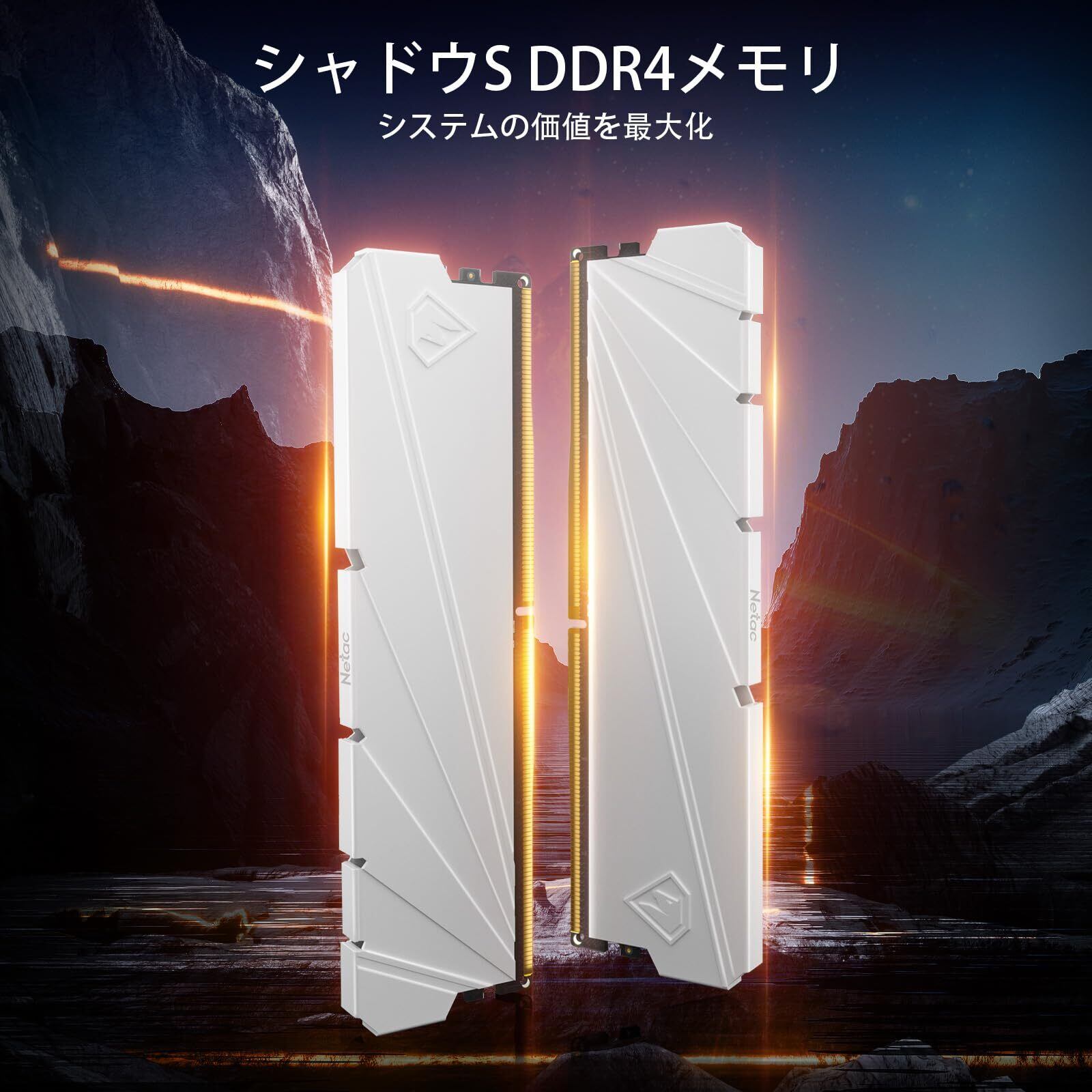 Netac DDR4 3200MHz(PC4-25600) 32GB (16GB x 2枚) PCメモリ XMP 2.0 ワンクリック オーバークロック対応 1.35V 纯白 アルミニウム合金