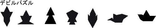 7つのピースを使って問題図の一つ一つを作って下さい。問題図形は101問。シルエットパズル中ではかなり難しい部類に入ります。