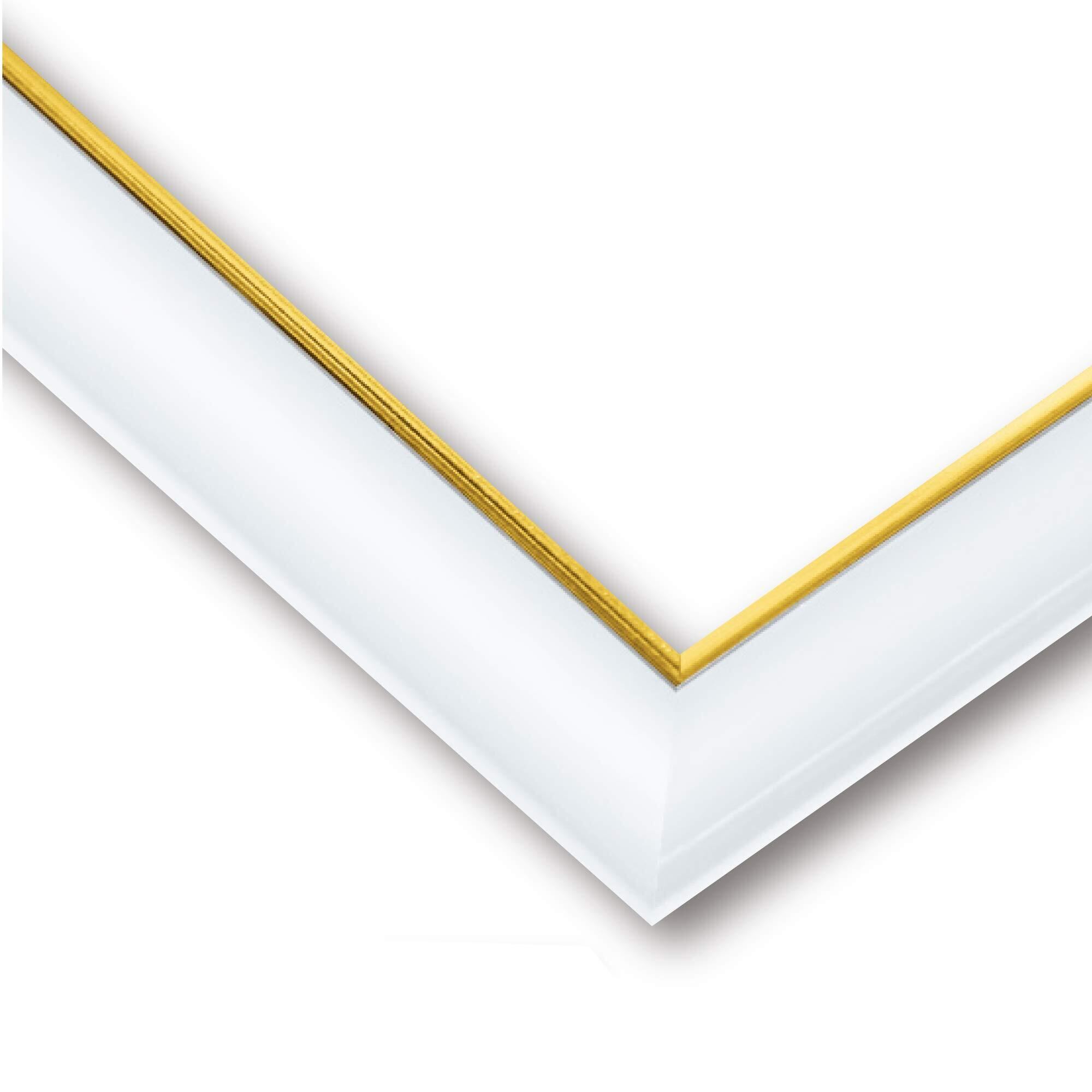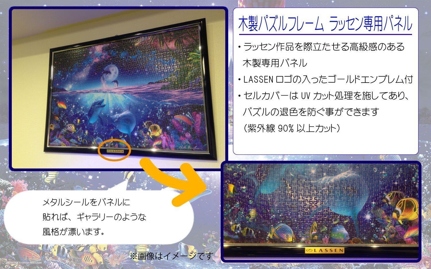 ラッセンの絵柄に合う色を厳選したフレームに、ゴールドのモールを施した特別仕様の木製パネル。
