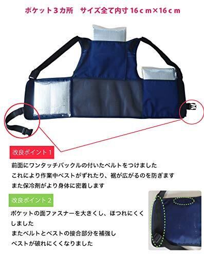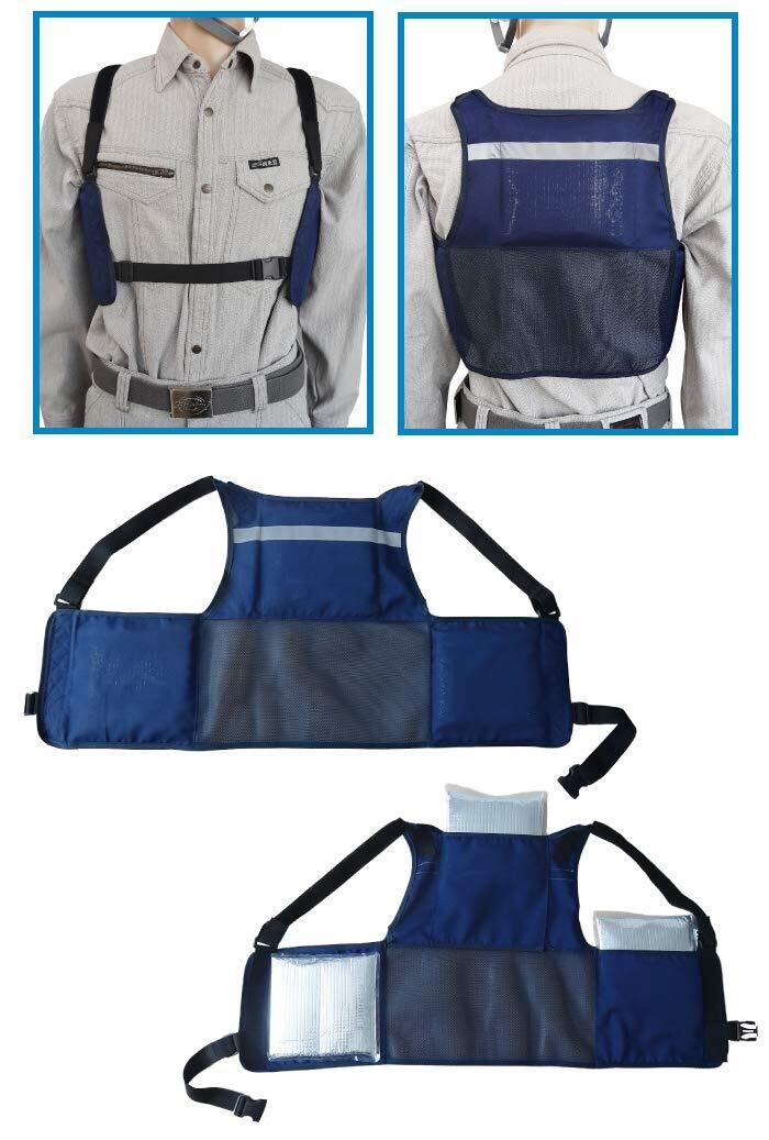 3カ所のポケットに入れた保冷剤が背中と両脇を冷やし 作業中の暑さを和らげてくれます。