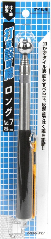 外壁検査用工具に。【特長】・外壁のタイル・コンクリートの浮きを見つける検査工具です。・ご使用の際は、外壁を叩くのではなく、先端の玉をころがすようにしてください。