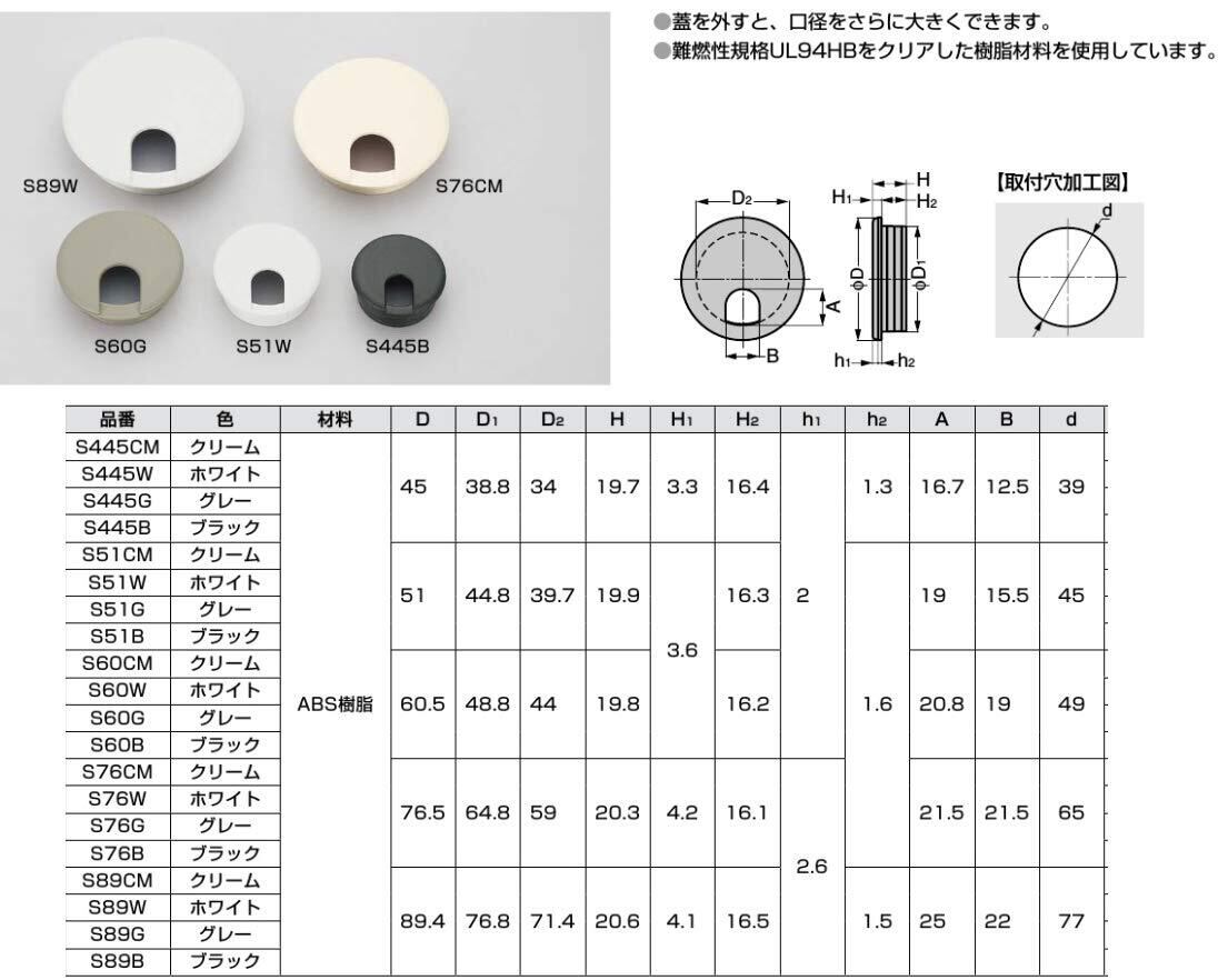 配線孔キャップ 丸型 【LAMP】 スガツネ S445型 B: ブラック
