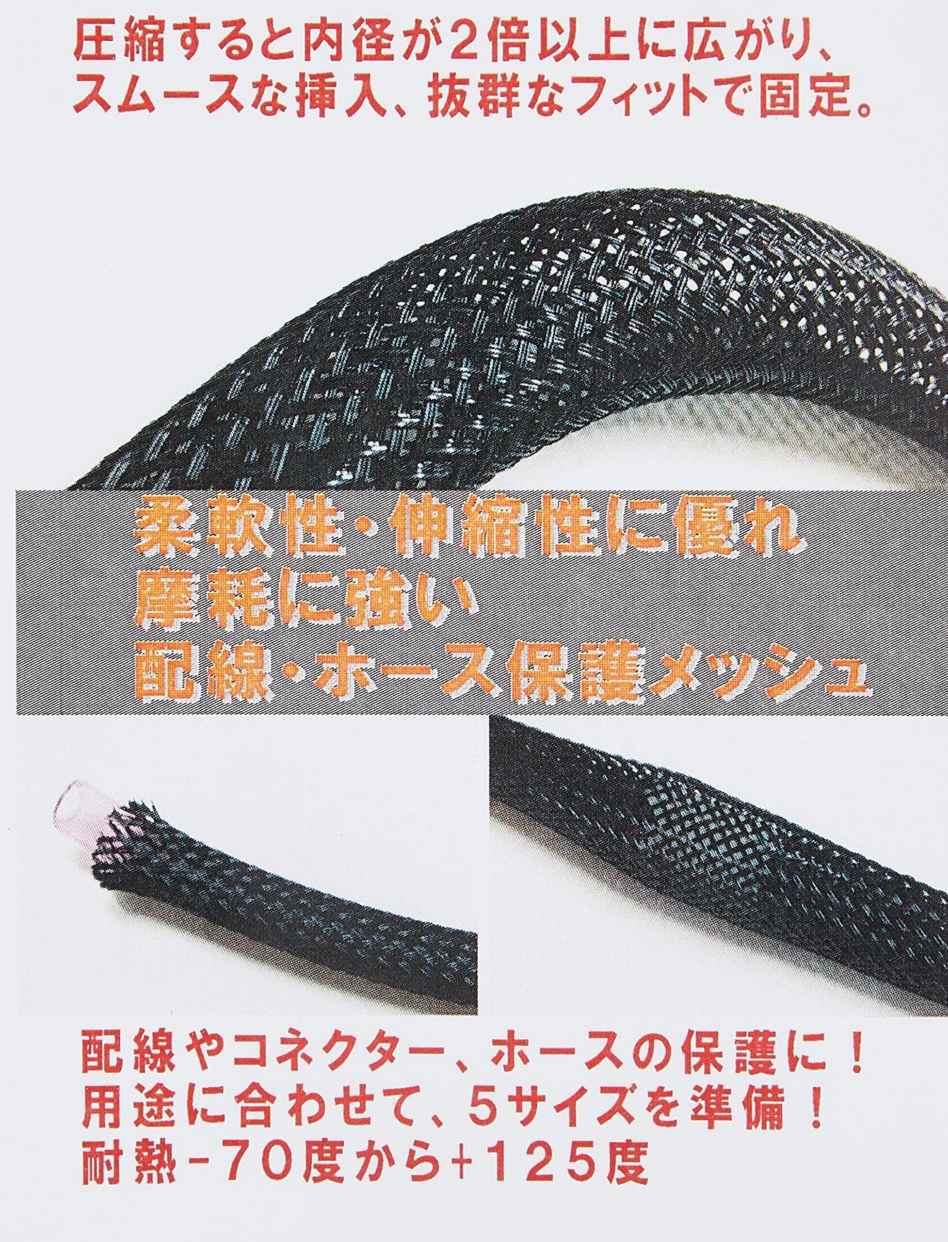 従来の4サイズに加え、細い配線のまとめに最適なφ3.2を新たに設定、従来品に比べ耐摩耗性が劣りますが、配線・ホース・ワイヤーの保護に最適です。