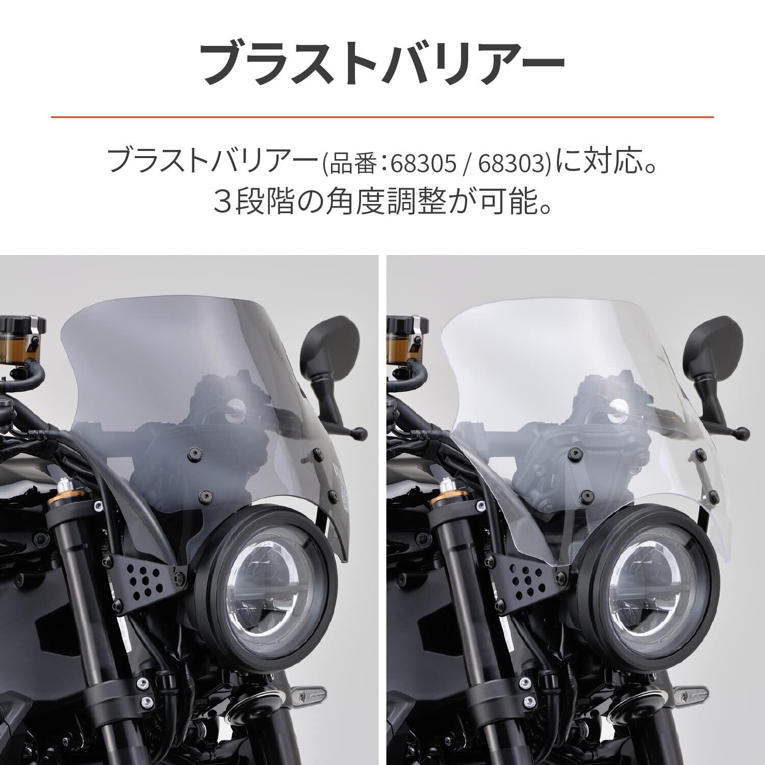 エアロバイザー(品番:67572/67573)、ブラストバリアー(品番:68305/68303)、ブラストバリアーX(品番:71539/71538)