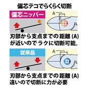 偏芯テコ機能で従来製品よりも軽く切断出来ます