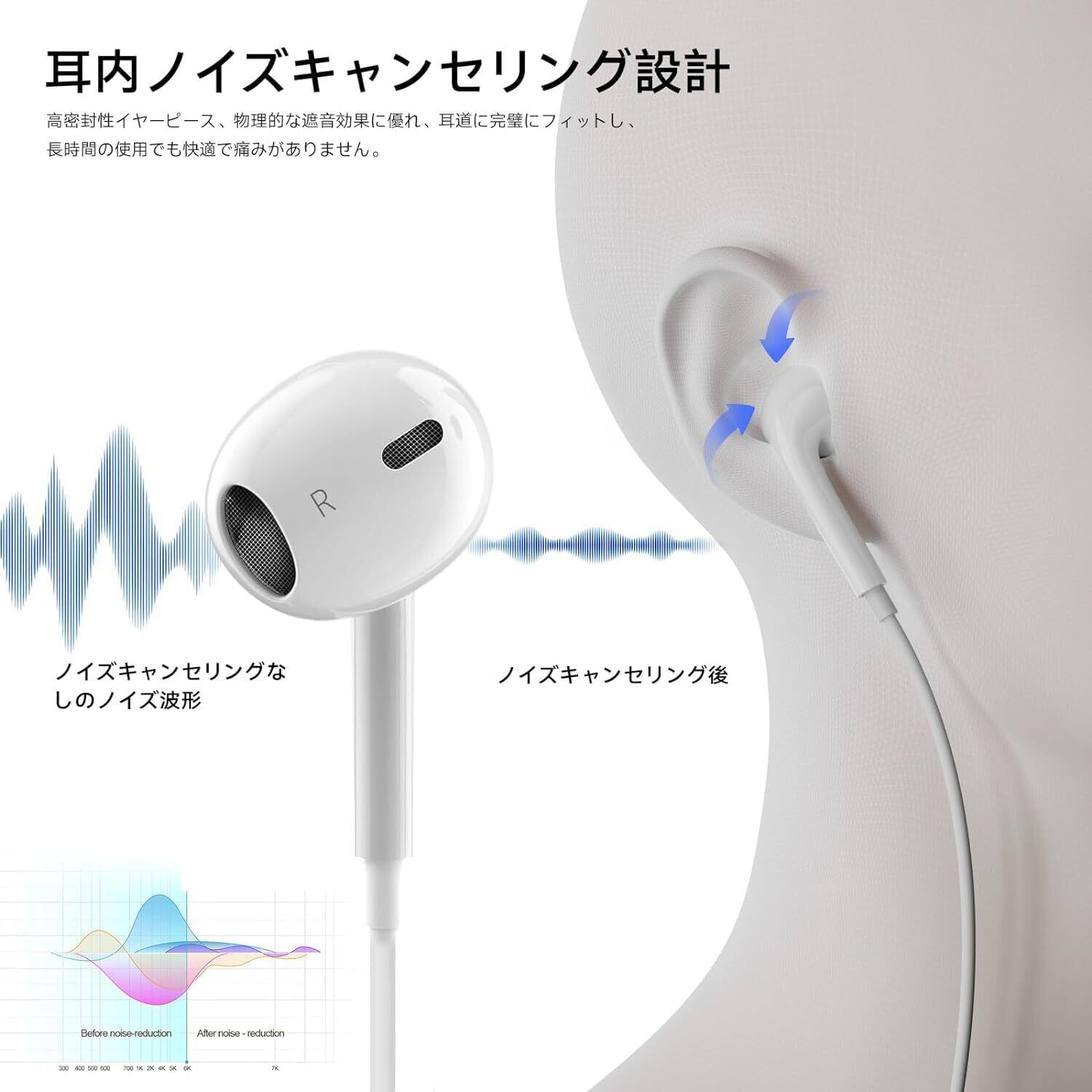 イヤホン タイプc イヤホン【2025新版 iPhone15/16対応】 有線HiFi クリア通話 イヤホンマイク 快適な装着感 apple type-c 人間工学 usb c 絡み防止 遅延なしタイプシー 重低音 リモコン付き カナル型 小型·軽量 防水 iPhone/Android/Galaxy/iPadなど対応