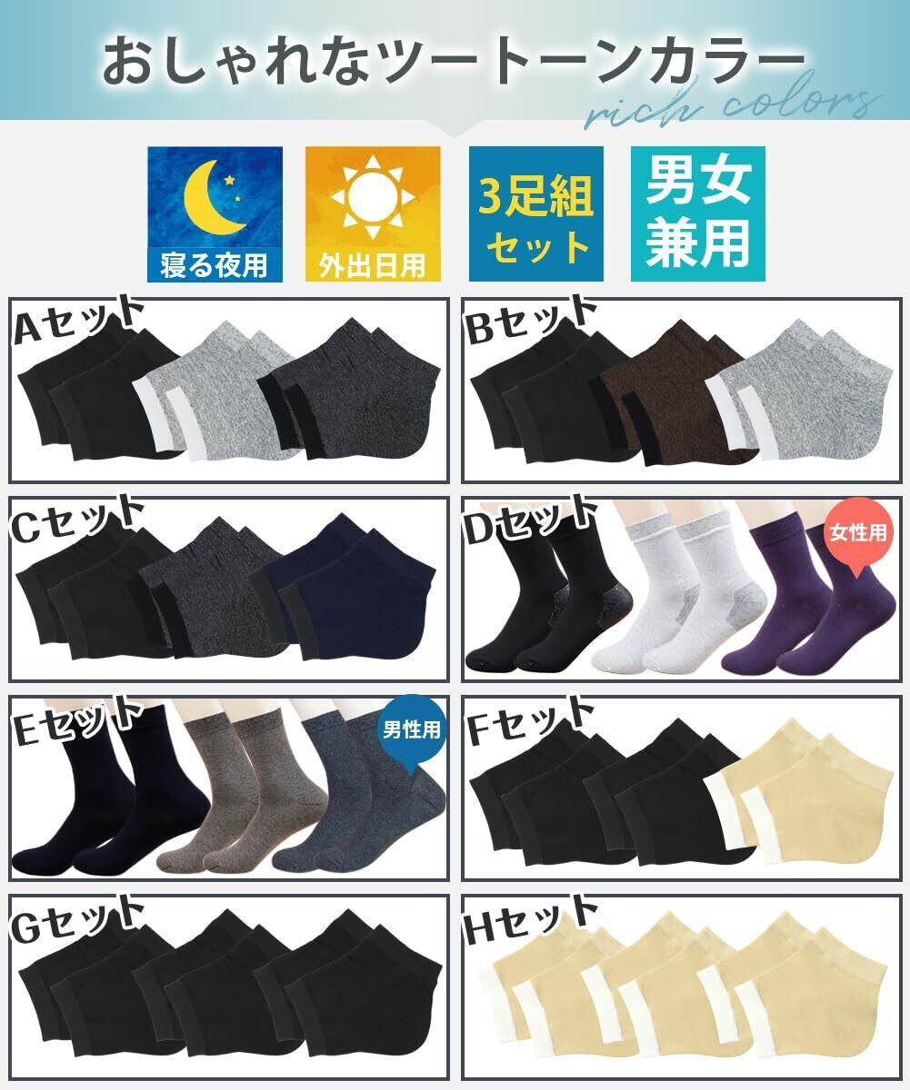 【3足組】かかとケア靴下 かかと保湿ソックス【3倍保湿効果・保湿最大化を実現・着用時の異物感なし】角質ケア かかとつるつる かかとソックス ひび割れ対策 ツルツル 保湿保護 かかとサポーター 保湿 (Gセット【男女兼用・夜用】)