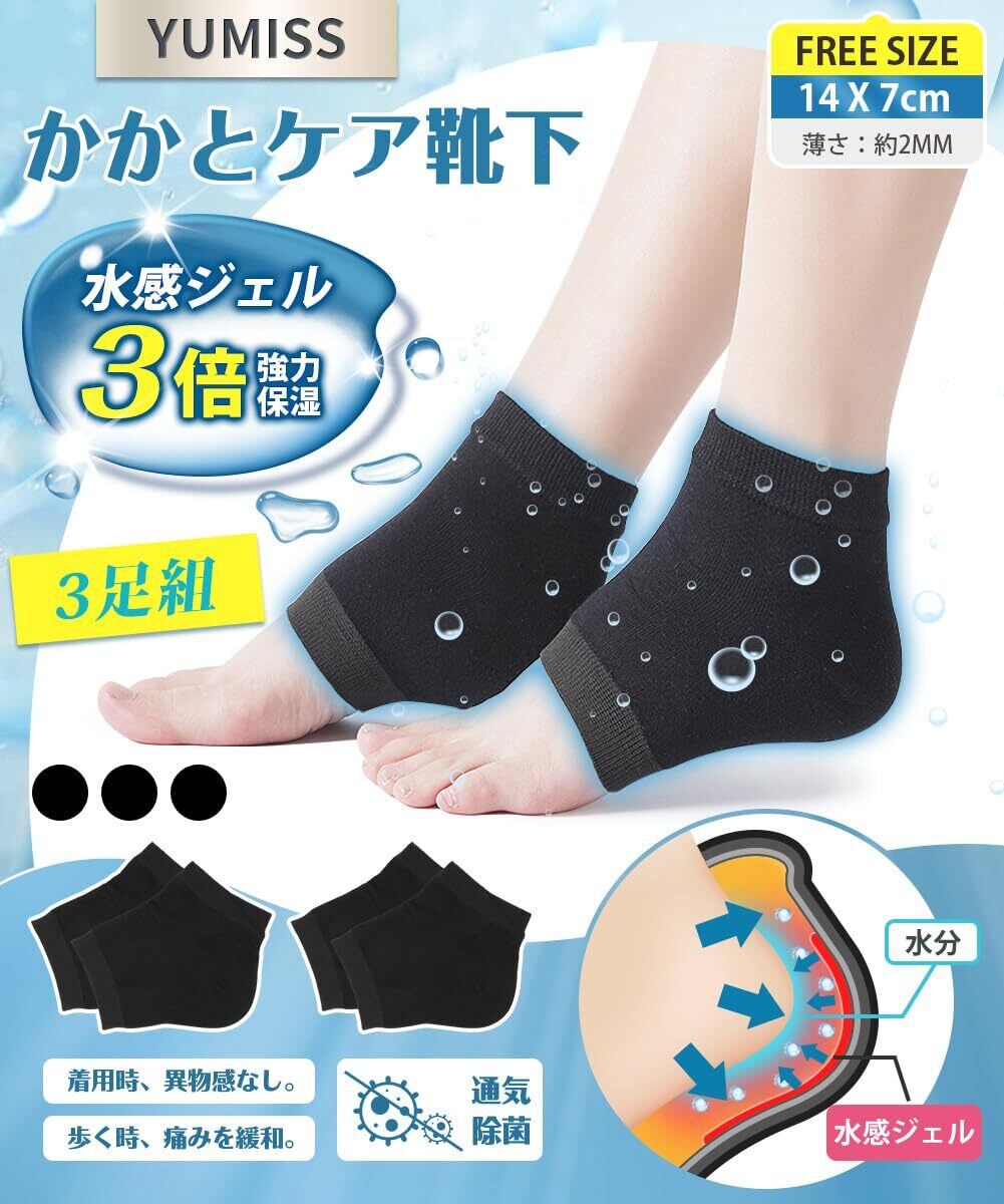 【歩く時の痛みを緩和、着用時の異物感なし】 YUMISSのかかとケア靴下はかかとの亀裂による歩くのが痛い方におすすめになります。歩行時のかかとへの衝撃を吸収し痛みを緩和することができます。シリカゲル保湿ジェルの厚さは0.8mmしかなく、生地は柔らかい。足に履いても何の負担も異物感もなし、着心地が良いです。