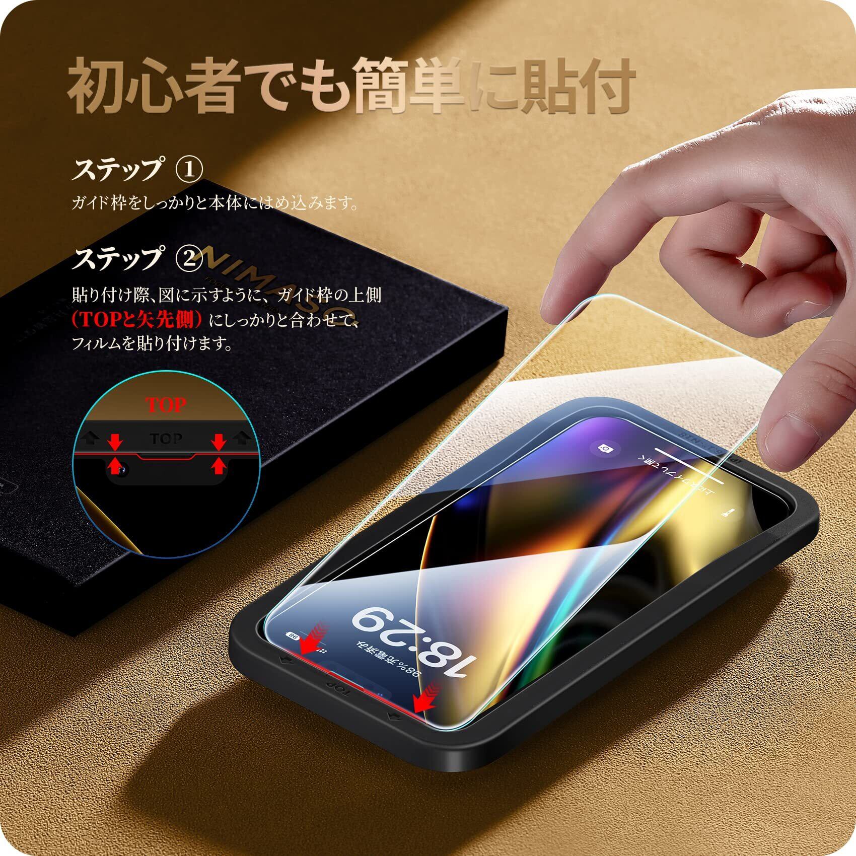 NIMASO ガラスフィルム iPhone 14 用/iPhone 13 Pro 用/iPhone 13 用 保護 フィルム 強化ガラス 耐衝撃 ガイド枠付き 2枚セット アイフォン14/13プロ/13 対応 6.1インチ用 NSP22H533 | BASE SHOP