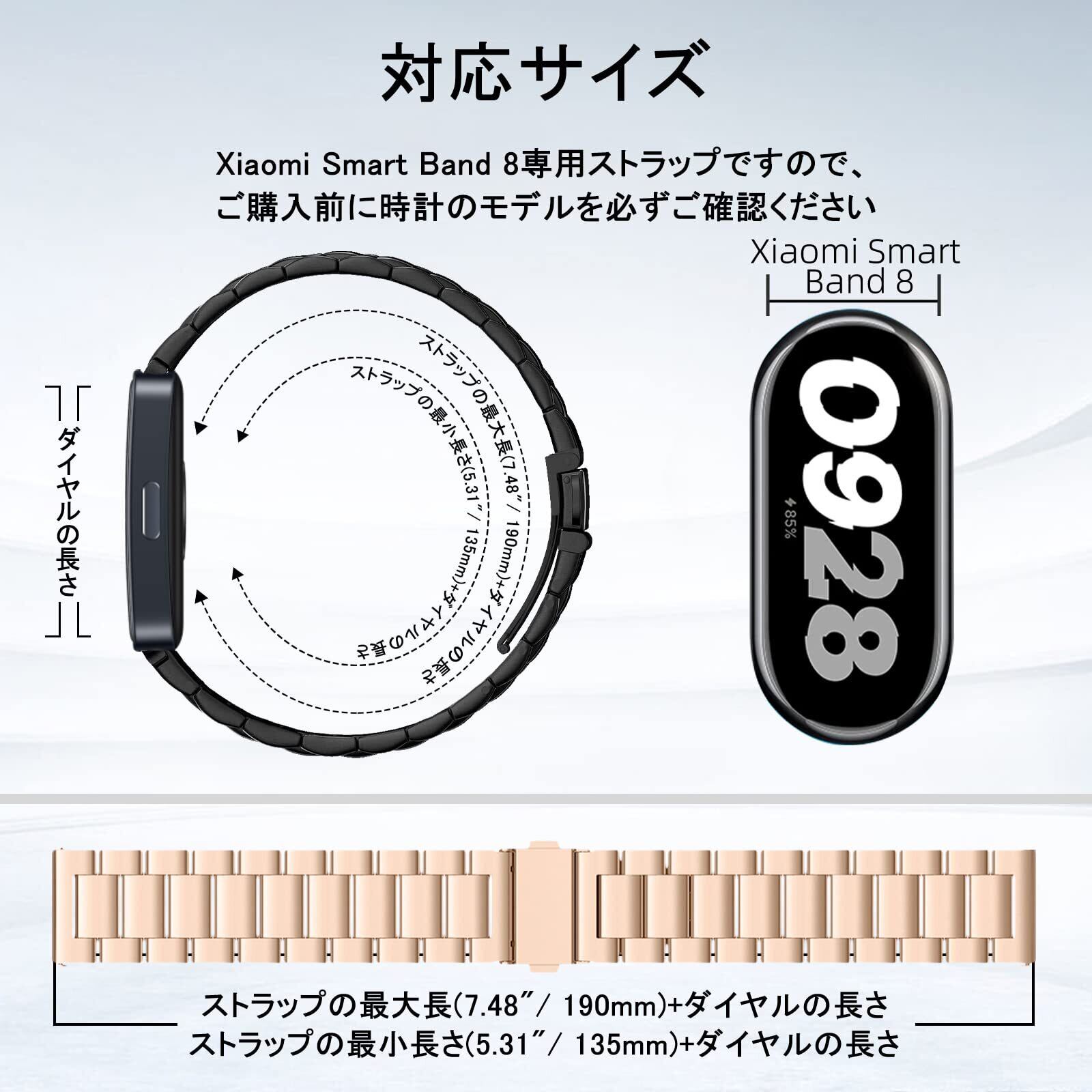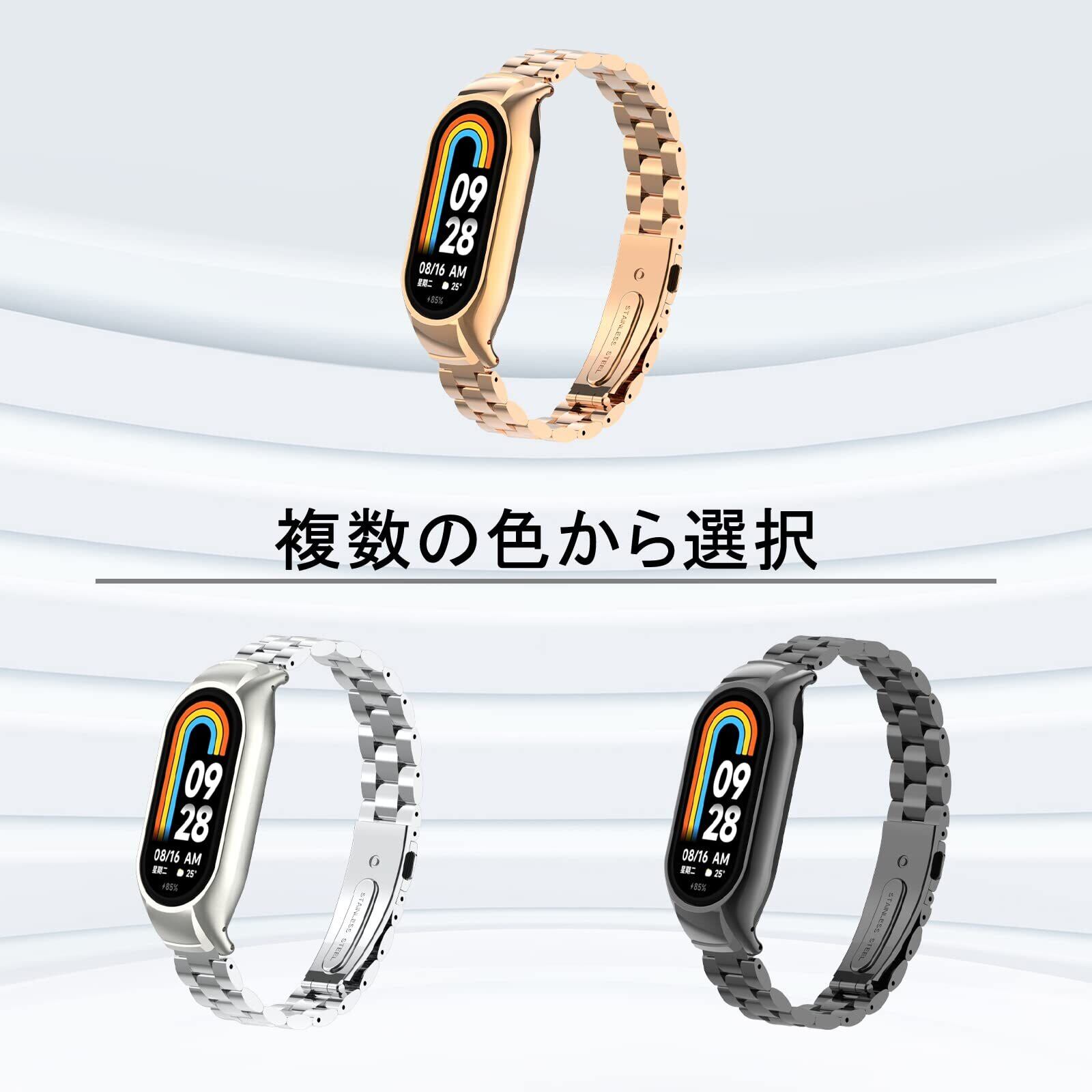[ReHowy] バンド Xiaomi Smart Band 8 / Xiaomi Band 8 対応 交換バンド ビジネス風 ステンレス製 サイズ調節可能 調整工具付き 交換ベルト 替えベルト コンパチブル Xiaomi Smart Band 8 / Xiaomi Band 8 バンド ローズゴールド | BASE SHOP