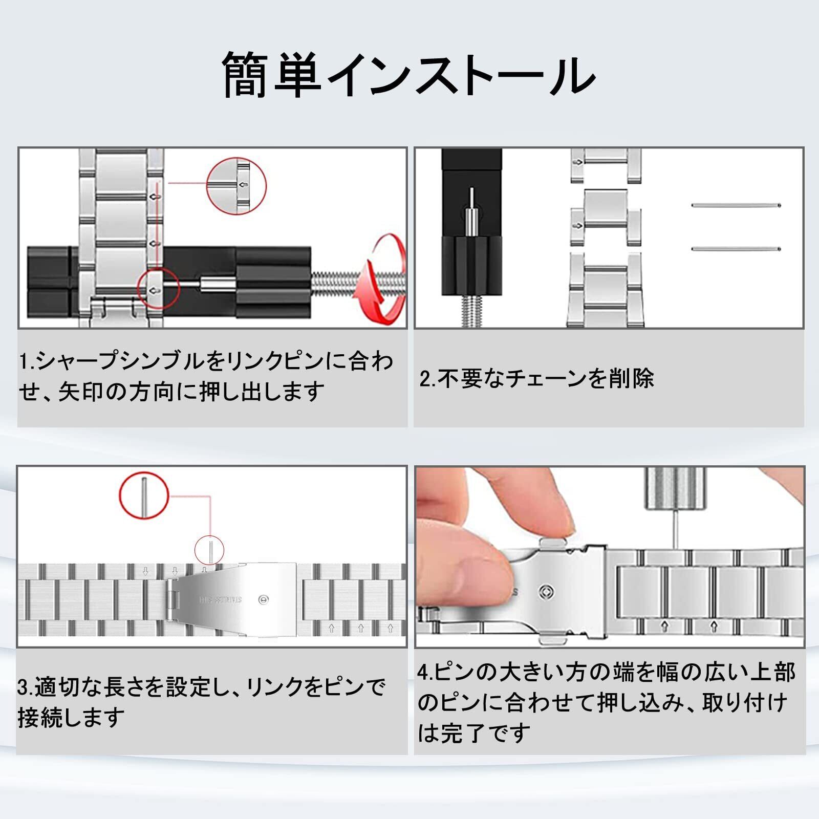 ReHowy交換バンド取り外すは簡単、クイックリリース技術を利用し、時計ベルトを数秒で装着できます。ベルト調整専用工具付き、付属の専用工具でヒトコマづつ調整することが出来るので自分に合ったサイズで使えます。