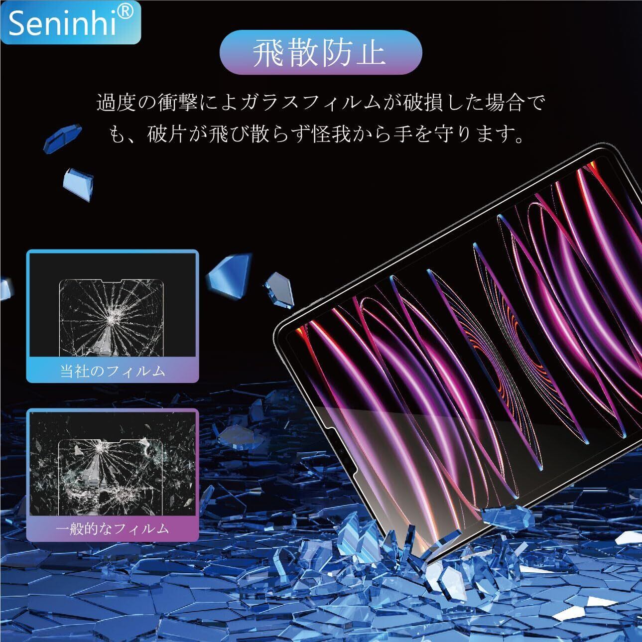 【硬さ9H・飛散防止】seninhi強化フィルムは業界最高硬さ9Hに達し、通常の強化フィルム硬さの5倍の耐衝撃性に達して、いきなりショックの力を与えされても携帯電話の画面を最大限に保護します。しかもフイルムエッジ部分を2重に補強して、普段に使う場合一番割れやすいエッジ部分がもっと頑丈になり、更にガラスフィルムが割れても飛散防止設計したので、ユーザー様にもっと安心できる使用環境を築いております。