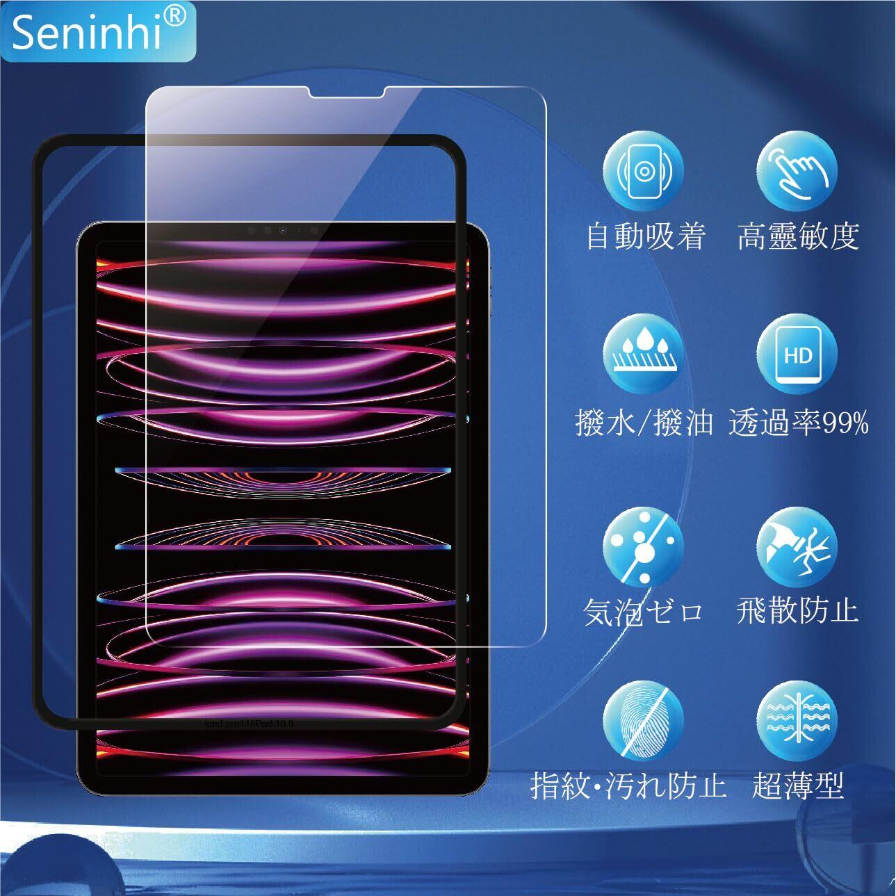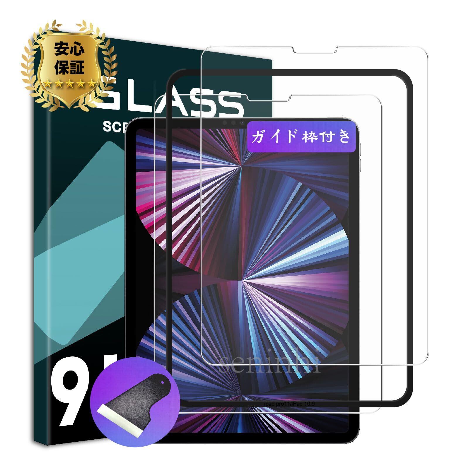 seninhi iPad Pro 11 第4世代 M2 2022 フィルム 【2枚セット ガイド枠付き】 対応 iPad Air5 第5世代 Air4 ガラスフィルム 保護フィルム iPad Pro 11 2021 強化 ガラス 国産旭硝子素材製 飛散防止 9H硬度 高透過率 指紋防止 さらさら キズ防止 貼り付けやすい BSBSIP11M24