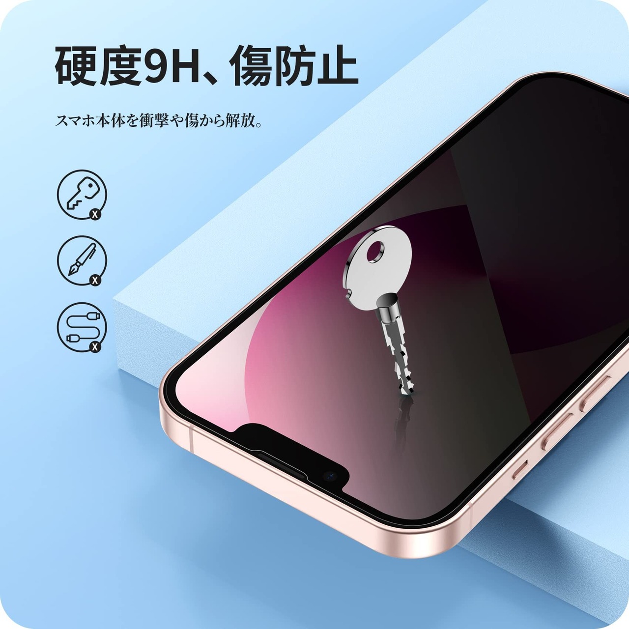 特徴 覗き見防止/気泡防止/指紋・汚れ防止/硬度9h/飛散防止/耐衝撃/高感度タッチ/貼付け簡単/快適な指滑り/自動吸着/防水/ホコリ防止