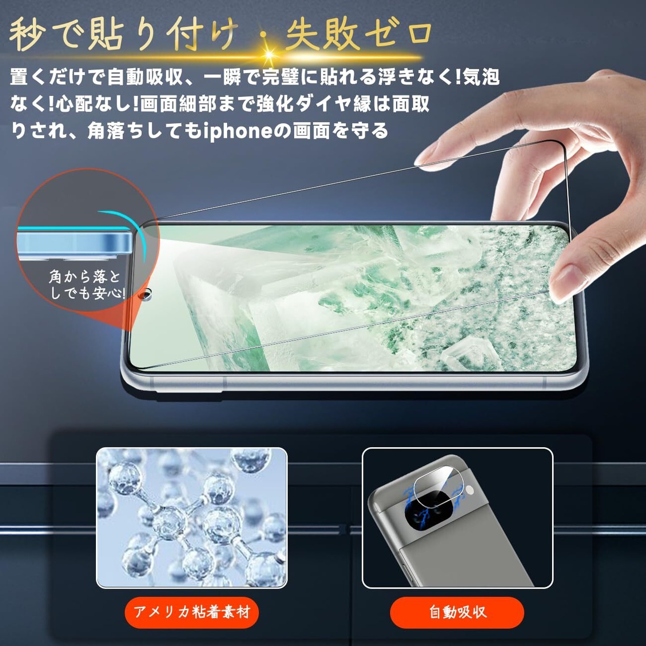対応 Google Pixel 8 5G ガラスフィルム 指紋ロック解除対応 【2* フィルム + 2* レンズ保護フィルム 】Google Pixel8 薄型 強化ガラス さらさら ピクセル8 5g 保護フィルム Google Pixel 8 5G 液晶 ガラス ケース【3D Touch対応 硬度9H 厚さ0.26mm 国産旭硝子素材 気泡ゼロ 飛散防止 高感度 衝撃吸収 ラウンドエッジ加工 】