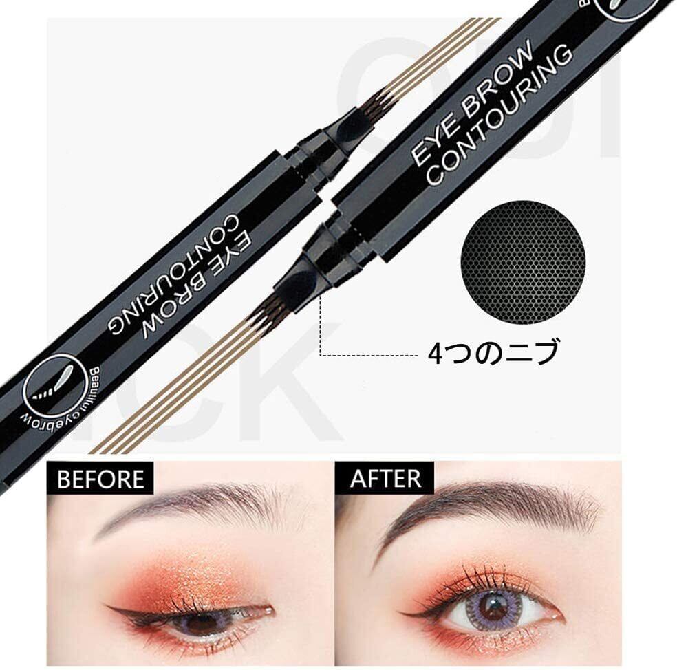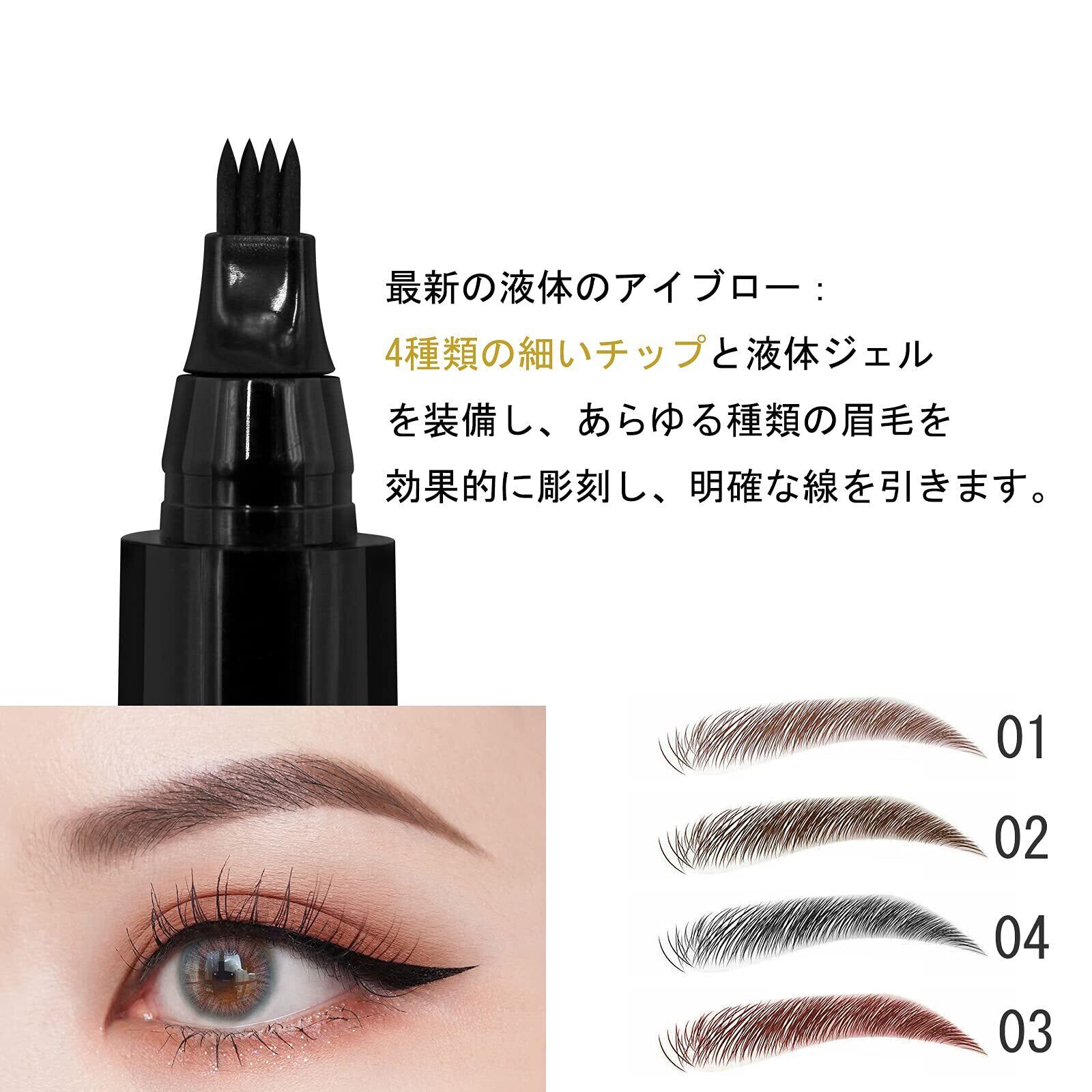 【2022最新版、液体アイブロウ】眉毛入れ墨のタトゥーペンシルのようなユニークな4つの歯のペン先を設計され、眉毛を自然に描けます。より魅力的な額のメイクを作成します。色付けが簡単で、3Dの自然な毛のように美しい効果があります。