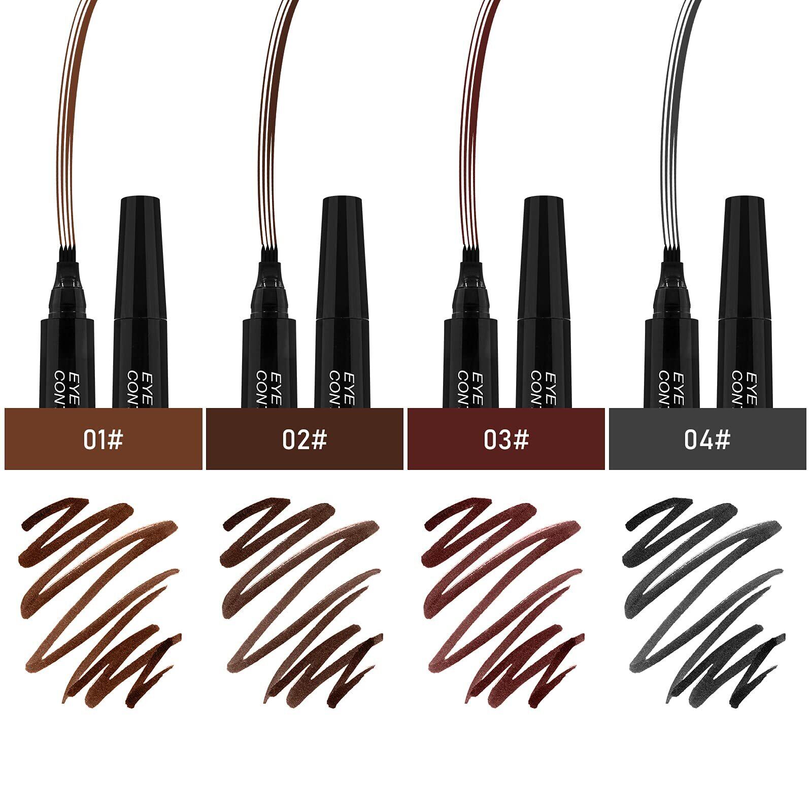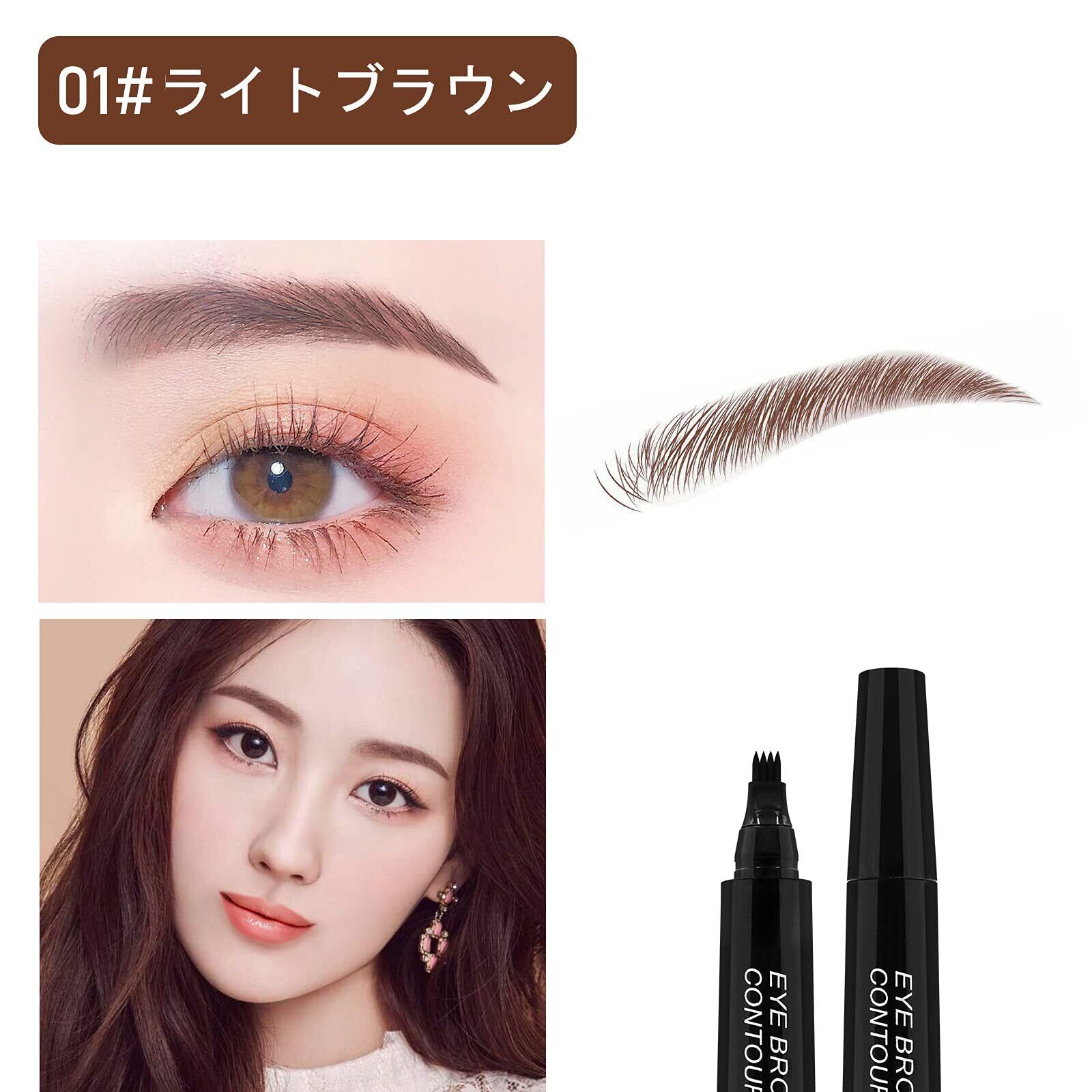 Pinkiou アイブロウ 4d液体アイブロウ 眉ペンシル 4つのニブ 落ちない マイクロフォークチップ 液体 長持ち 自然 アイメイク 防水 化粧品 メイクアップペン 人気 (01#ライトブラウン)