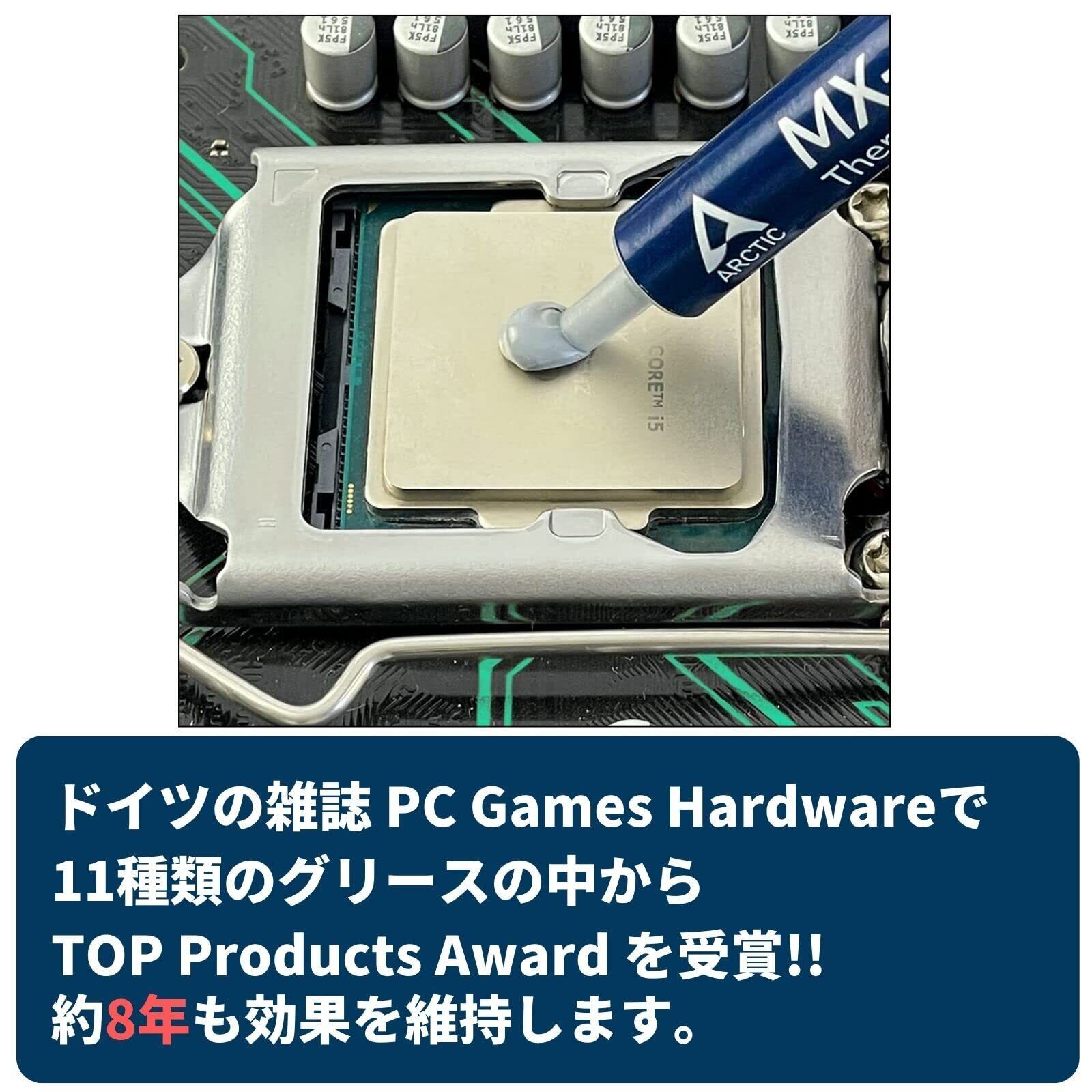 MX-4は優れた性能で多くの賞を受賞しており、市場でトップの熱伝導性ペーストの1つです。カーボン微粒子で構成されており、微細な空洞を埋めて高い熱伝導率を実現するサーマルグリスです。一度塗布すると、最長8年間持続します。 MX-4 の最新のバージョンは、偽造防止スクラッチがパッケージ背面にあり、購入した店舗等を入力することで正規品かどうかの確認が可能です。 ※購入店舗等の情報の入力はメーカーに情報を蓄積し偽造品を排除するために必要です。 粘度 870 poise 密度 2.5g /cm³ 熱伝導率 8.5W/mk