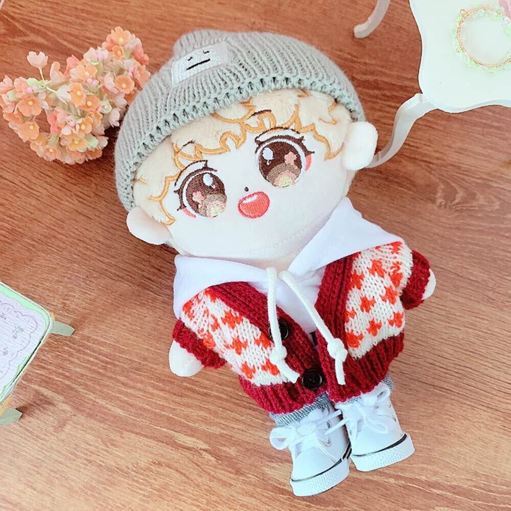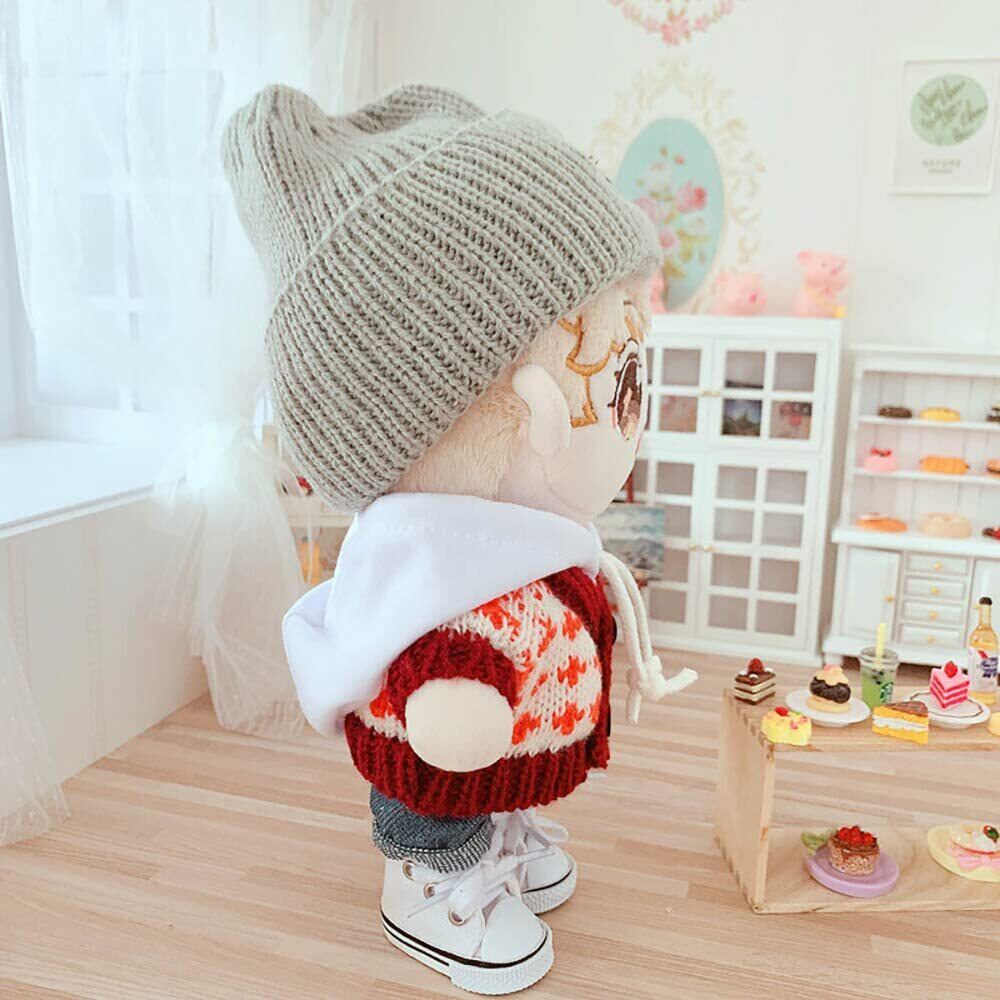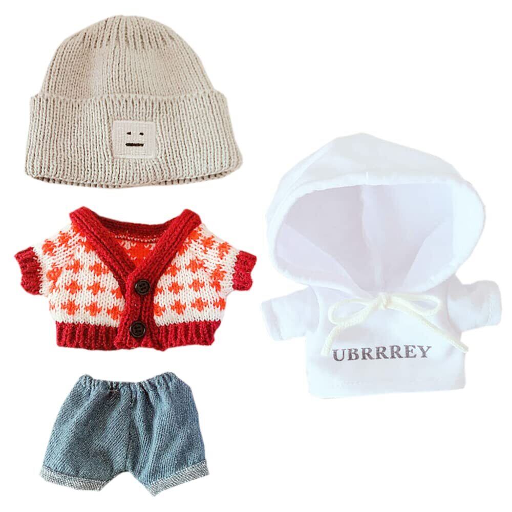 niannyyhouse 20cm人形の服 ぬいぐるみ 用 帽子+セーター+パーカー+半ズボン 4点セット 赤 綿人形の服 人形ベビー服 着せ替え