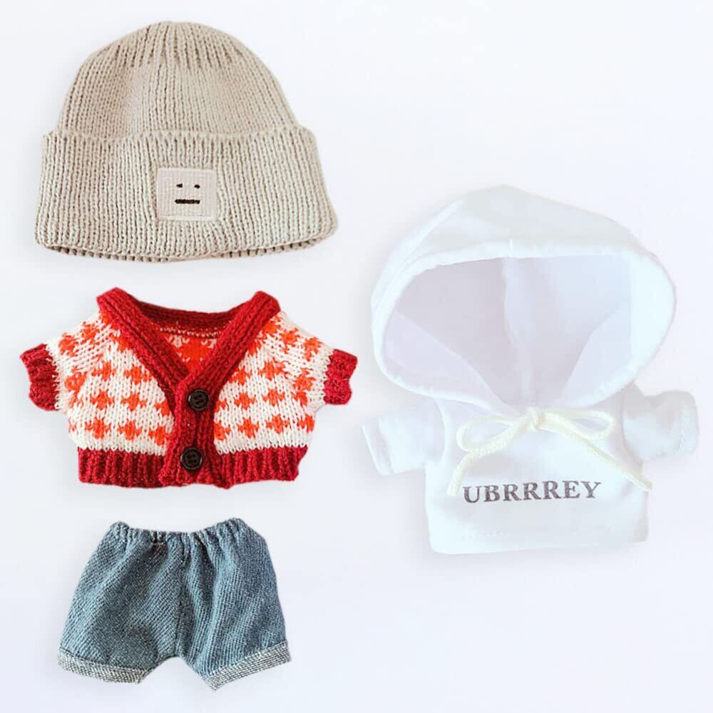 2.20cm綿人形衣装セット:帽子+セーター+パーカー+半ズボン 4点セット