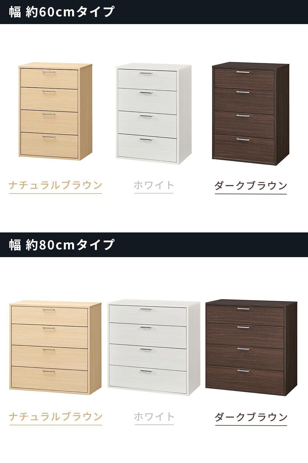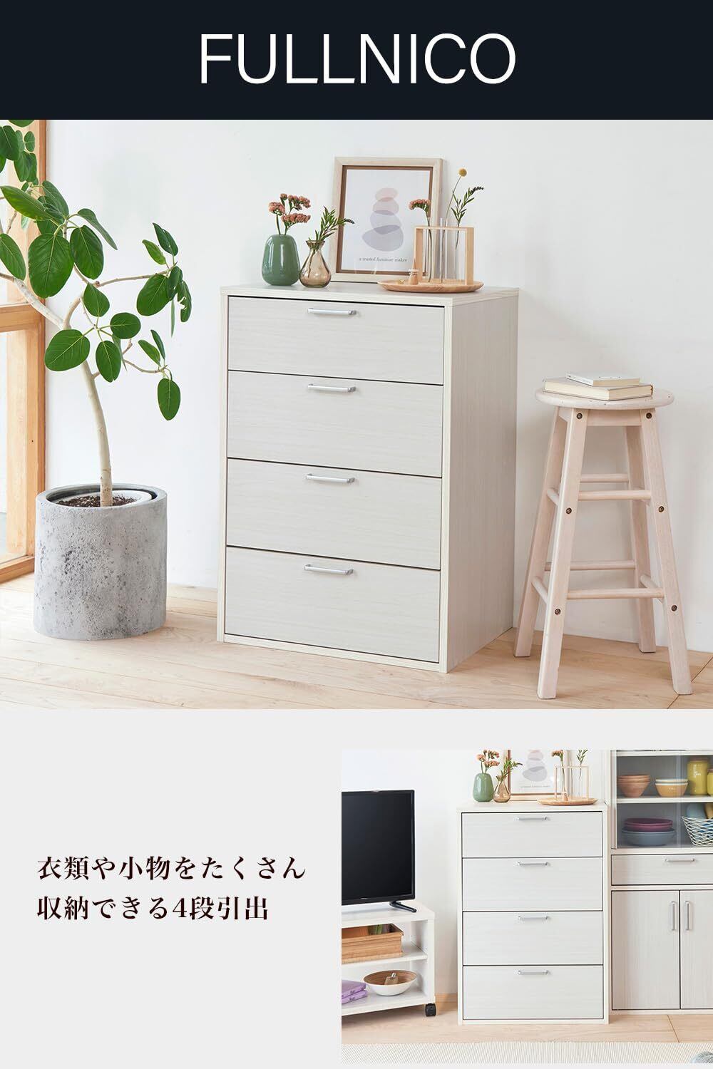 FUL-8055H WHはベーシックな機能の4段のタンス・チェスト。