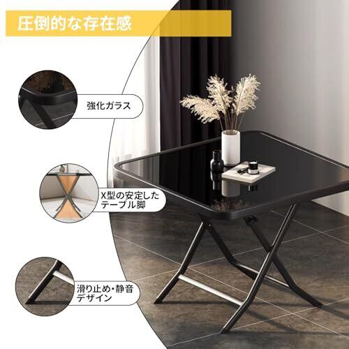 テーブル 折りたたみテーブル ガラステーブル コーヒーテーブル センターテーブル リビングテーブル テーブルおしゃれ low table 強化ガラス天板 四角テーブル 幅70奥行70高さ72