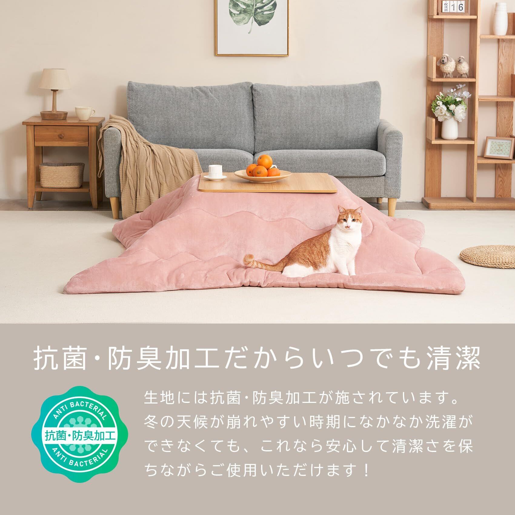 【汎用性】おうち時間がもっと好きになります。家族でわいわい囲んだり、一人でまったりくつろいだり。オールシーズン使える布団は、鍋パーティーをしたり、勉強やパソコン作業も快適な広さです。お部屋のや心にずっと過ごしたい居心地を。