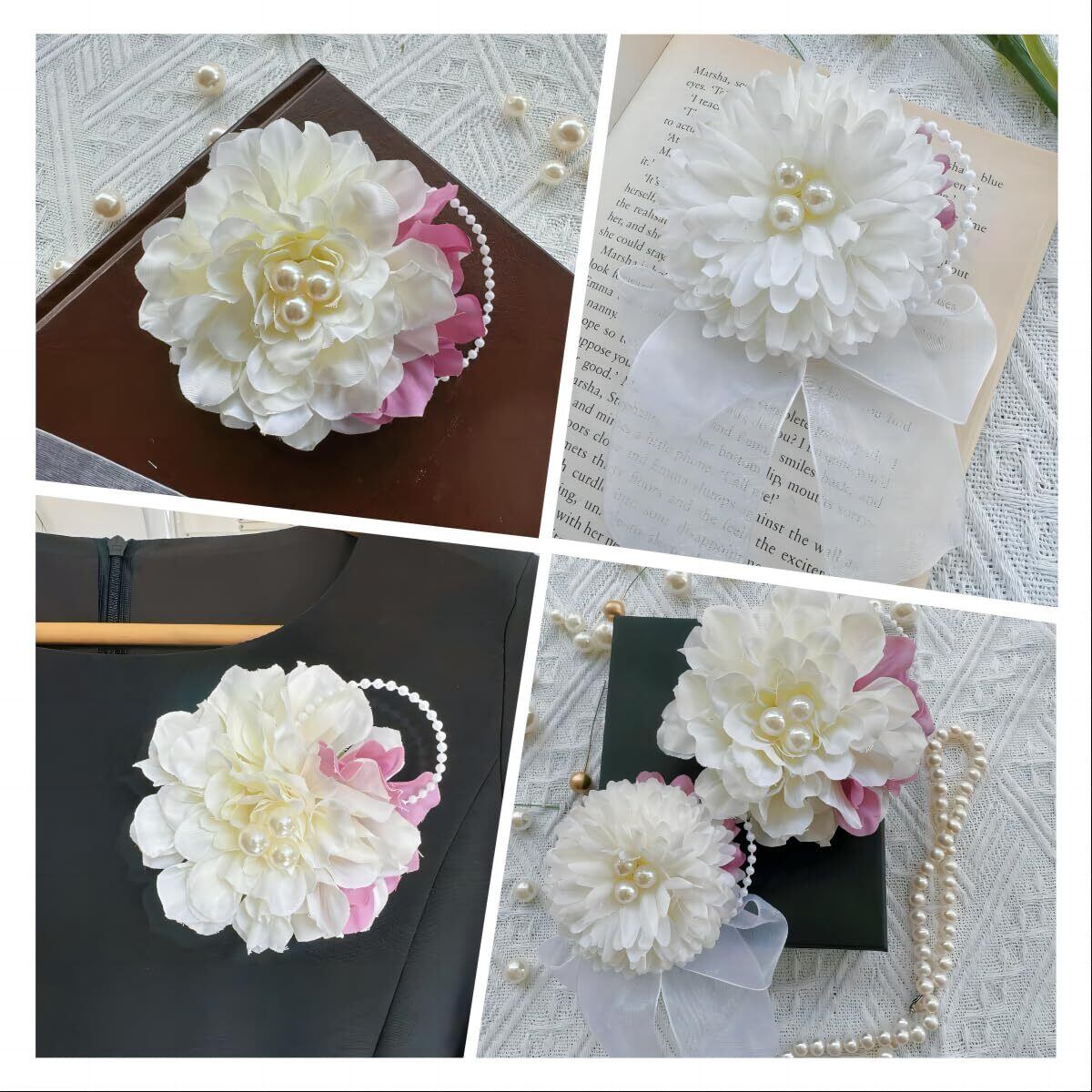 【素材】アーティフィシャルフラワー、オーガンジーリボン、パール ※洋服や、着物、髪の毛に自然につける事ができます。また、留め具にはピンとヘアピンの両方2Wayが付いています。髪留めにも、コサージュとしても使えますし、またバッグなどにつけてもかわいいです。