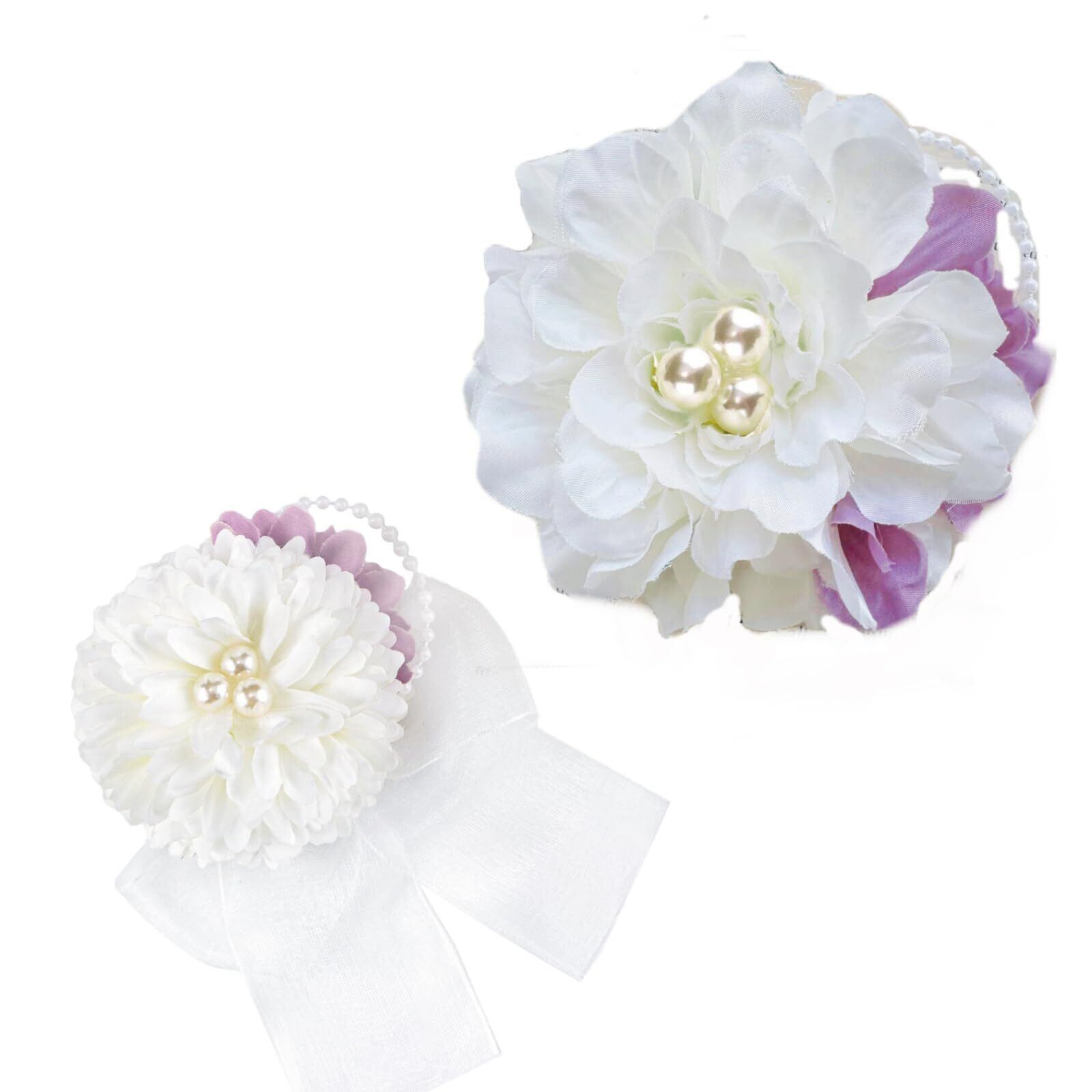 【アーティフィシャルフラワーにパールや優しいすみれカラーのアートフラワーを合わせ】ちょこんと子どもにはリボンを添えた爽やかなデザインの親子セットに仕上げました。 子どもは髪の毛にママは胸元につけて!等...特別な日の思い出をお揃いでお楽しみいただけます 親子お揃いでオシャレ度UP 記念写真を撮った時もまとまりがあって素敵だと思います
