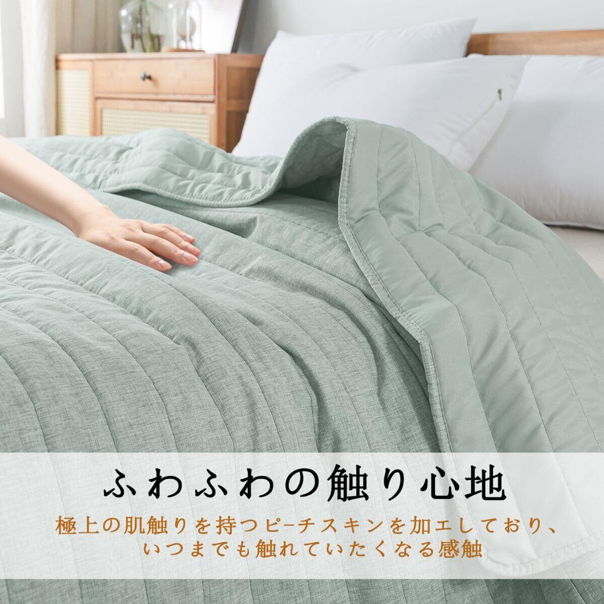 キルトケット オールシーズン 洗える 掛け布団 軽量 防ダニ加工 吸水速乾 オールシーズンほこりが出にくい 身体にやさしくフィット (グリーン, セミダブル・160X200cm)