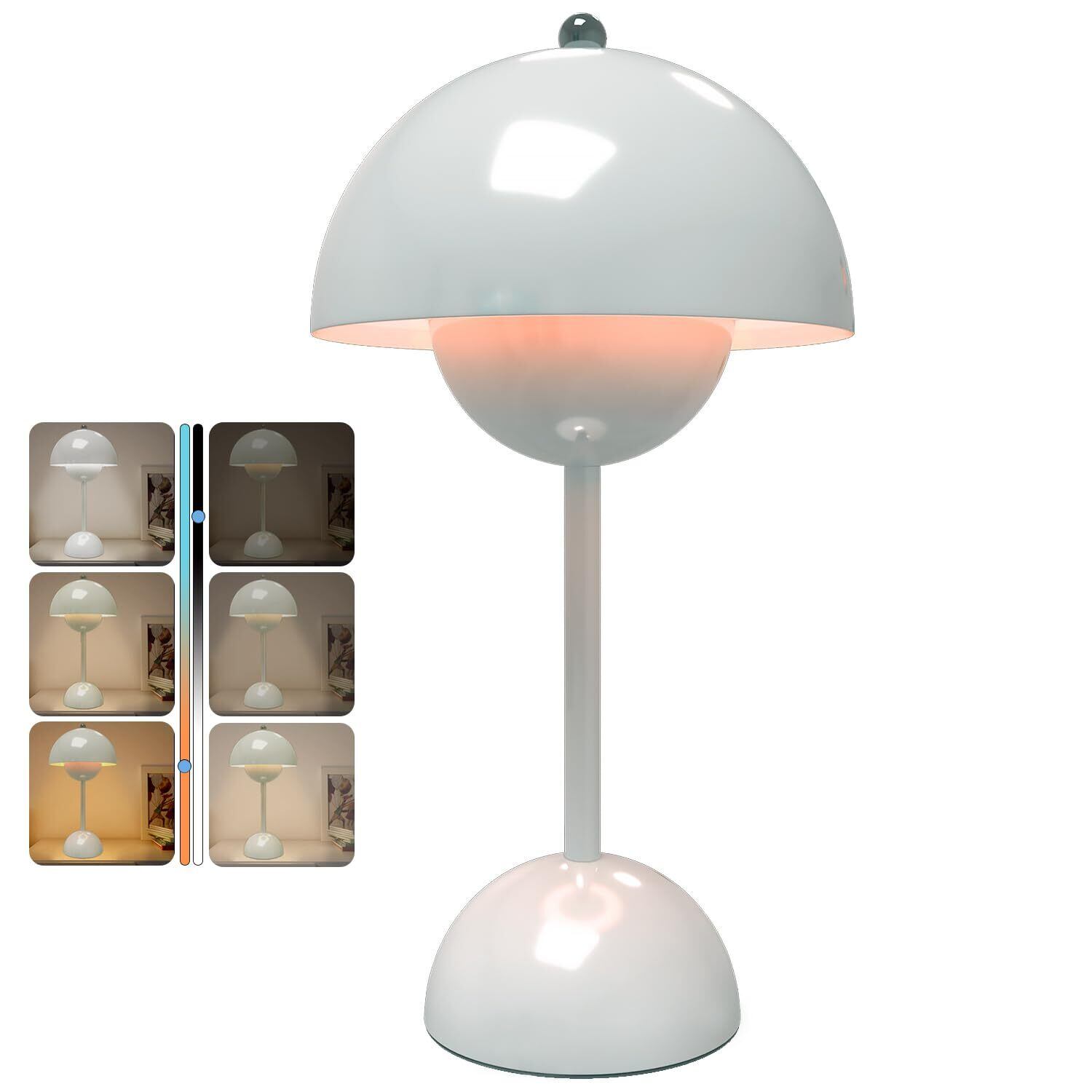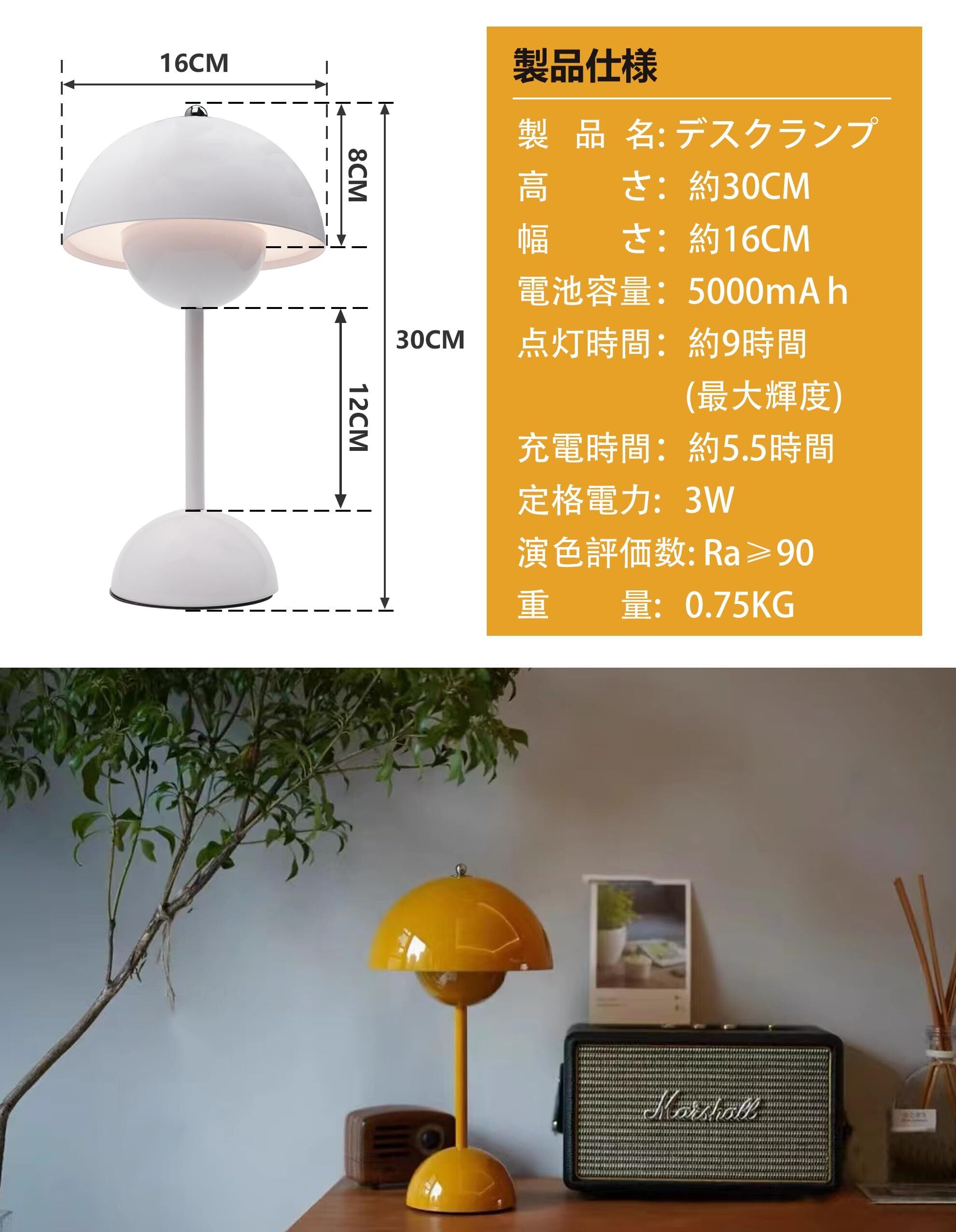 キノコランプ フラワーポットテーブルランプ LED 5000mAh 充電式 読書灯 卓上ライト おしゃれ 【タッチセンサー/電球色・白色・昼光色/無段階調光/USBポート付き/コードレス】間接照明 省エネ 目に優しい ベッドサイドランプ 雰囲気作り 常夜灯 寝室(ホワイト)