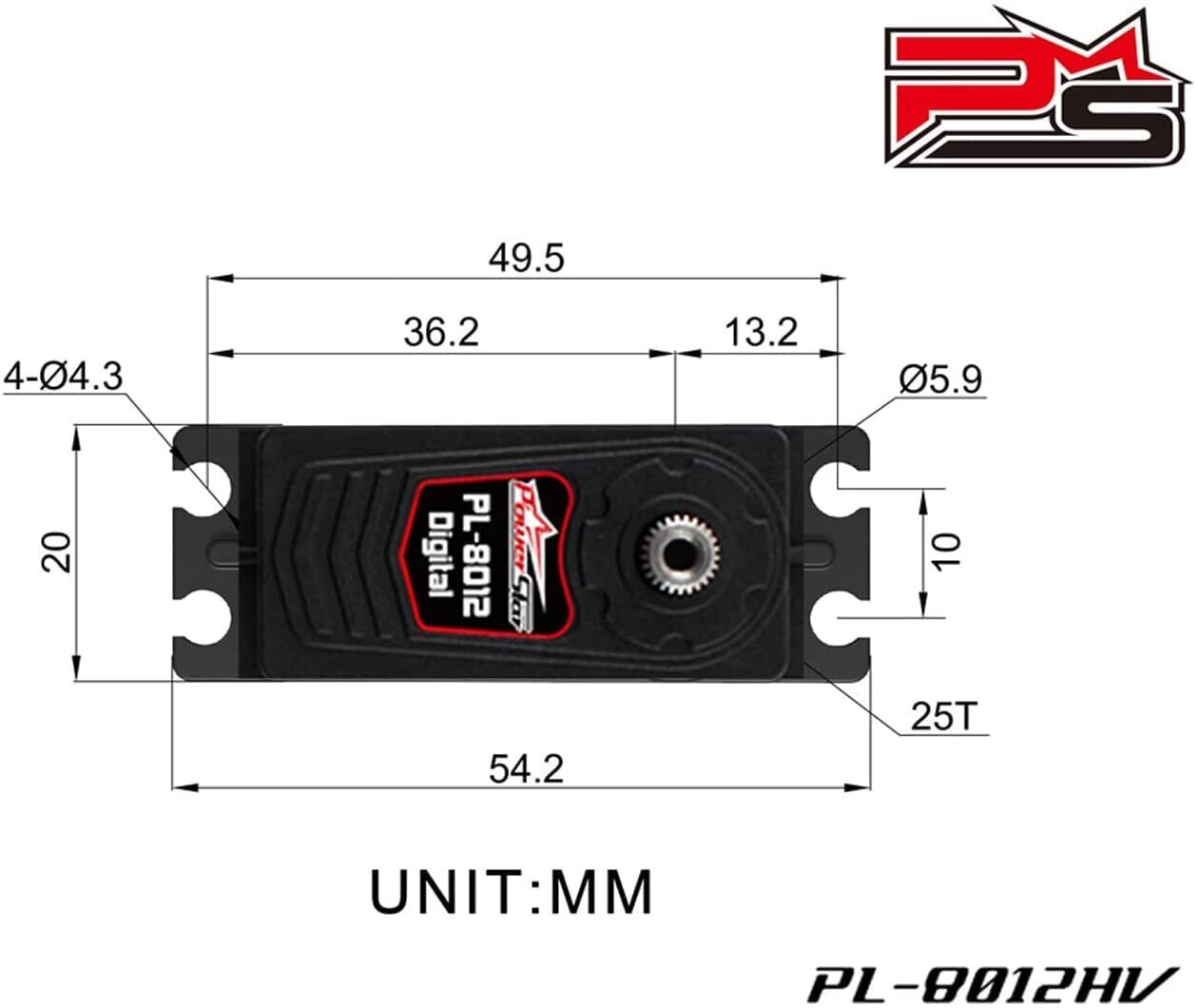 PowerStar ハイスピード型薄型デジタルサーボ(0.07sec/12.0kg) 金属ギヤ&HVハイボルテージ&防滴IP65仕様 ロープロサイズ PL-8012HV