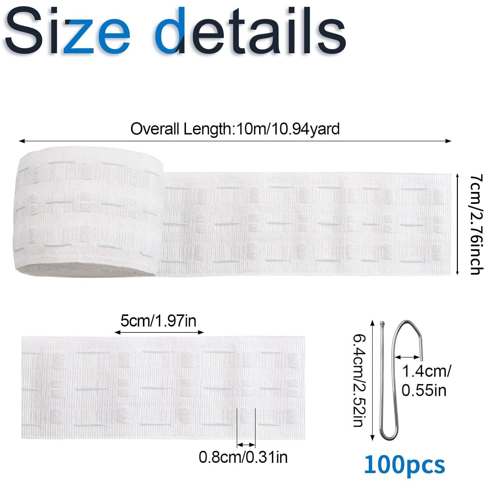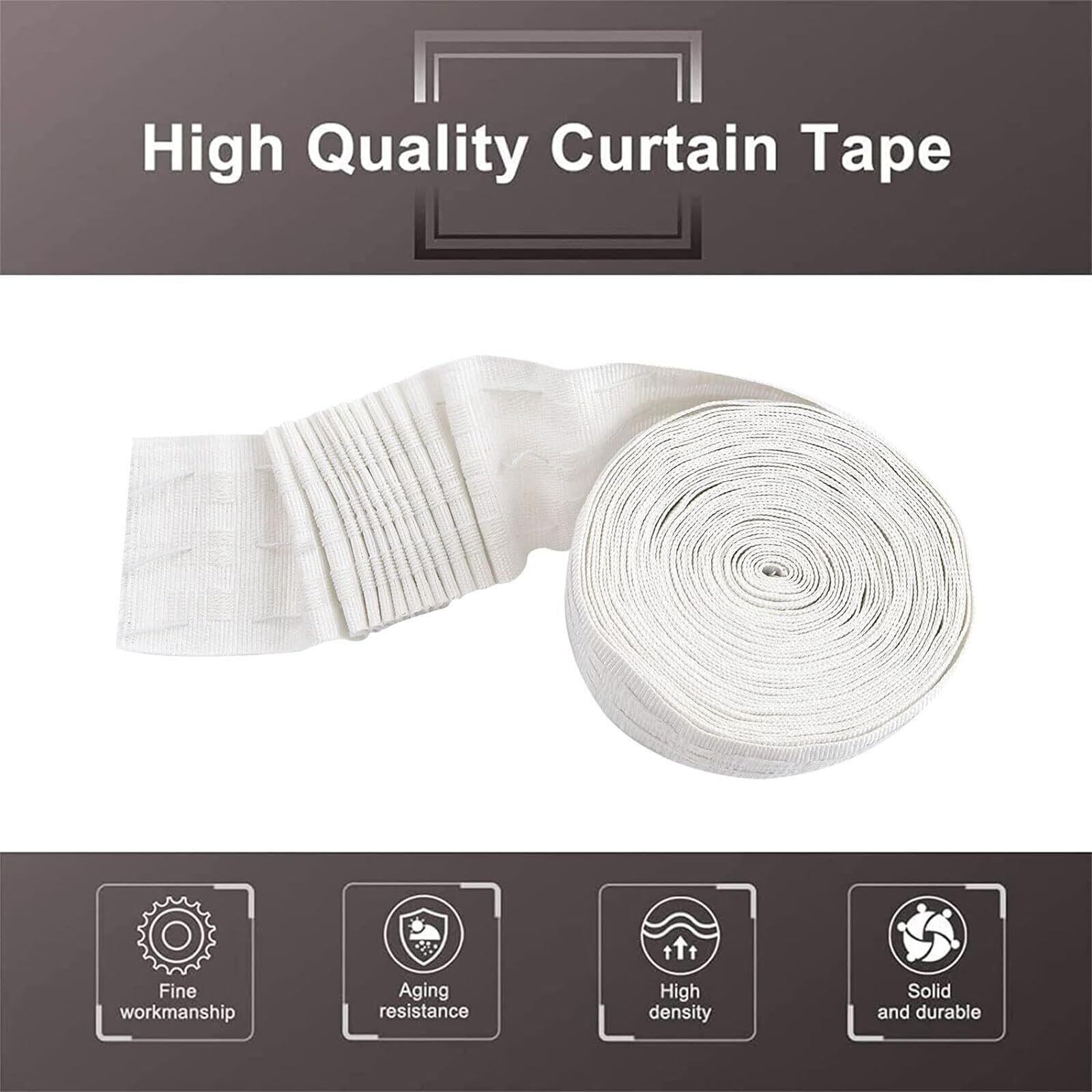 INCREWAY カーテンテープ、20m/21.87ヤードカーテン見出しディープピンチプリーツホワイトテープ、ガーゼカーテン用ソフトカーテンプリーツ、100個のシングルフックカーテンプリーツフック付き | BASE SHOP