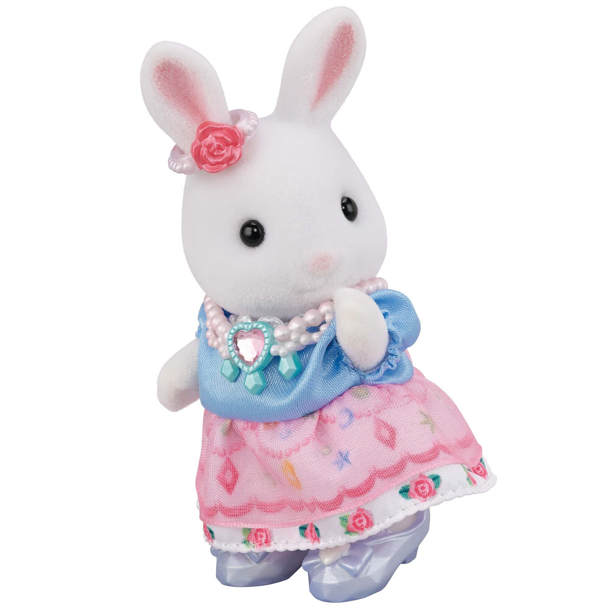 キラキラしたすてきな馬車と、アクセサリー小物、お姫様のようなしろウサギの女の子のセットです。