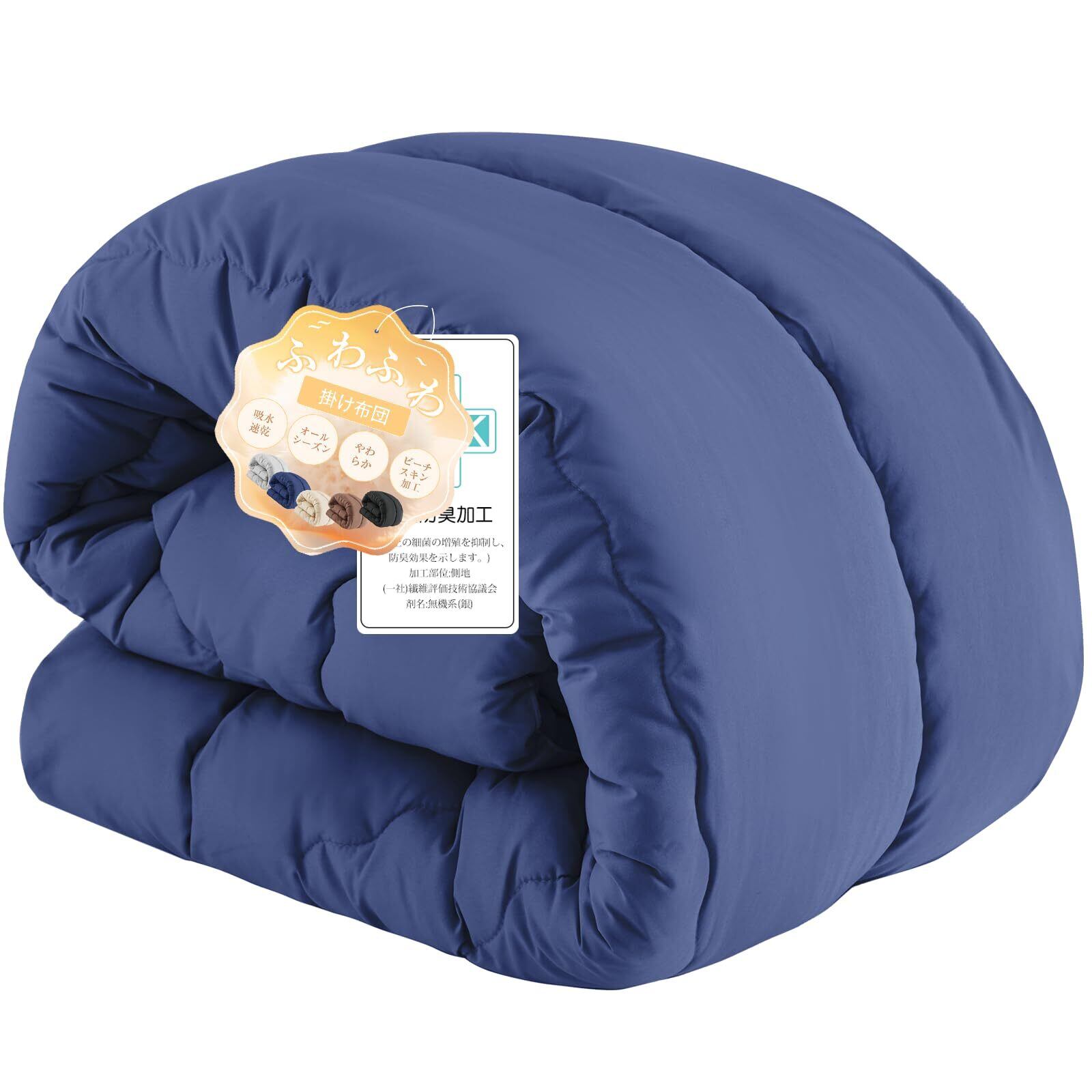 Matdeco 掛け布団 合掛け布団 シングル 掛けふとん 柔らかな肌触り 春秋向き 吸水速乾 かけ布団 洗える ピーチスキン加工 ふわふわ ほこりが出にくい オールシーズン 抗菌 防臭 防ダニ 身体にやさしくフィット 軽量 通気 中綿約1.0kg (150×210cm ネイビー)
