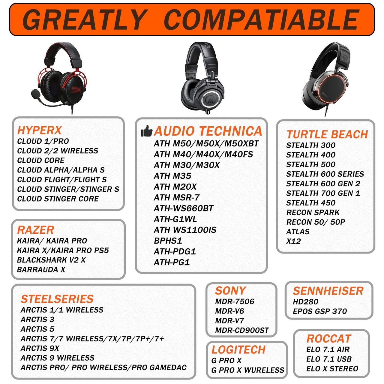 【優れた互換性】Audio Technica ATH M50/M50X/M40/M40X/M30/M30Xシリーズヘッドセット用イヤーパッド交換用イヤーパッド、HyperX cloud 1/2/ 3/ cloud alpha/cloud Flight/Cloud Stinger/cloud Mix/cloud Xシリーズヘッドホンイヤーパッド、Steelseries Arctis 1/3/5/7/7X/イヤークッション。 7P/7P+/。 7+/9Xワイヤレス/プロワイヤレス/プロゲームダックシリーズのヘッドフォン。Sony MDR-7506/V6/V7/CD900STの交換用イヤーパッドに対応。タートルビーチステルスヘッドフォンにも対応。 (多くのブランドのヘッドフォンに対応するイヤーパッド)。