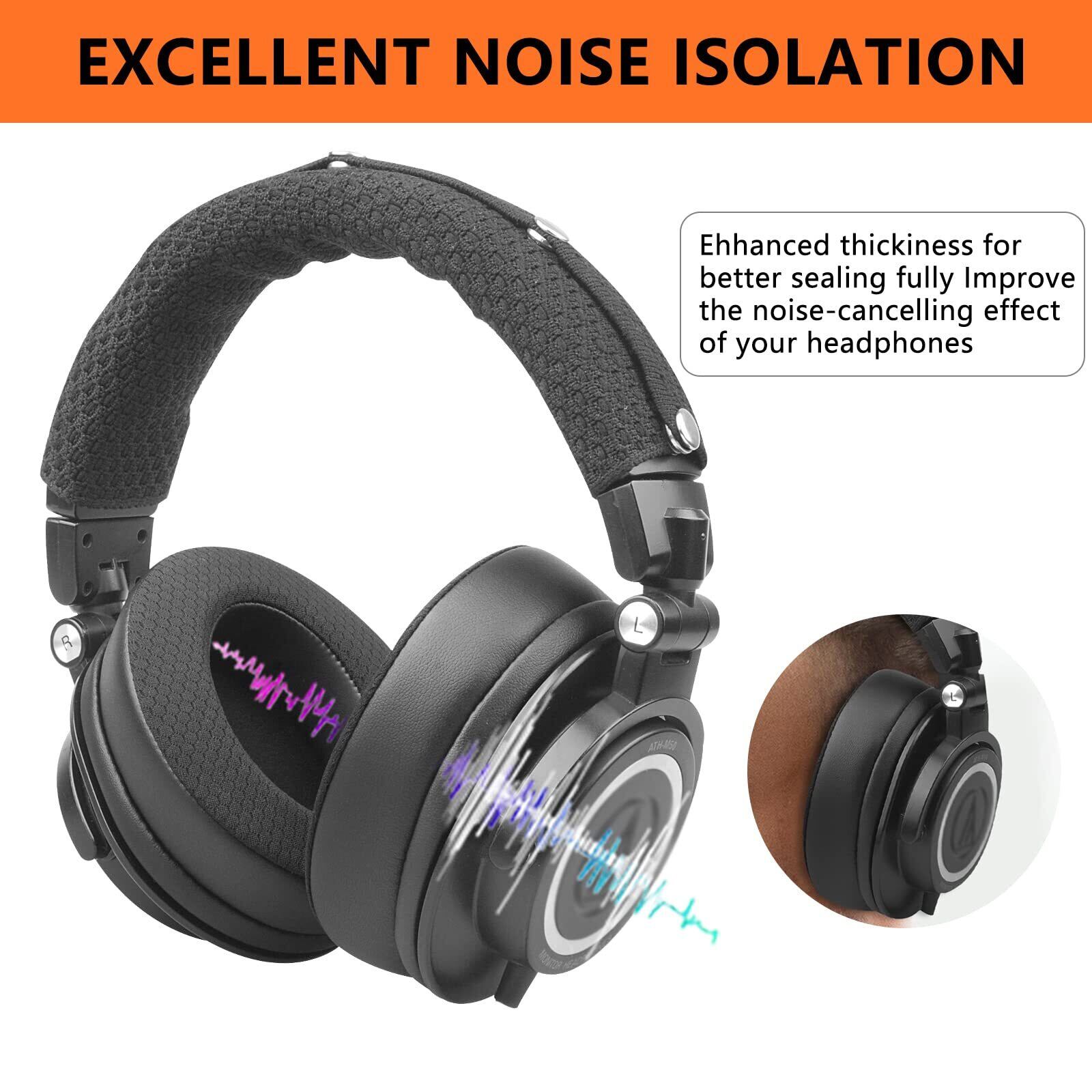 【強化されたサウンド】ATH M50xイヤーパッドの交換用は、優れた低反発素材でできています。このイヤホン交換セットは、耳を完璧にフィットさせ、ノイズブロックを強化し、純粋な音だけが耳に届きます。 ヘッドセットの最も原始的な音質。