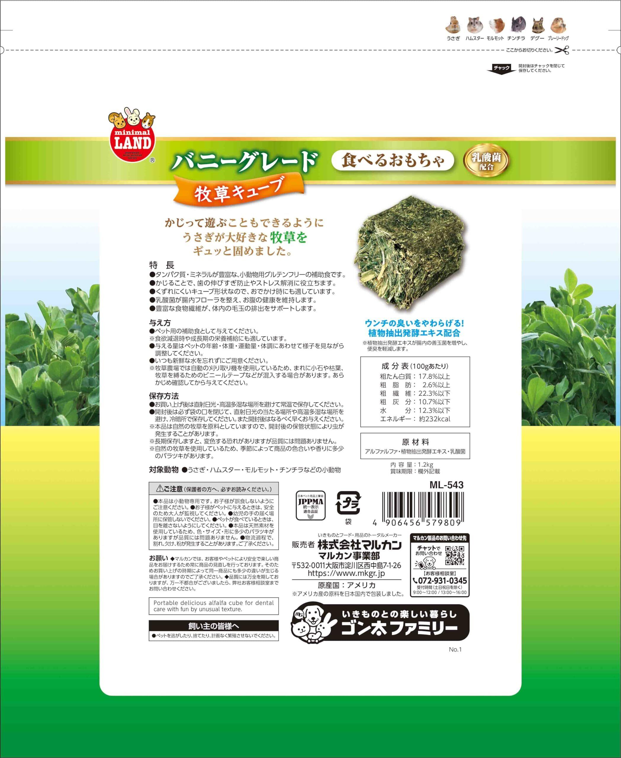 ミニマルランド バニーグレード 牧草キューブ お徳用 1.2kg