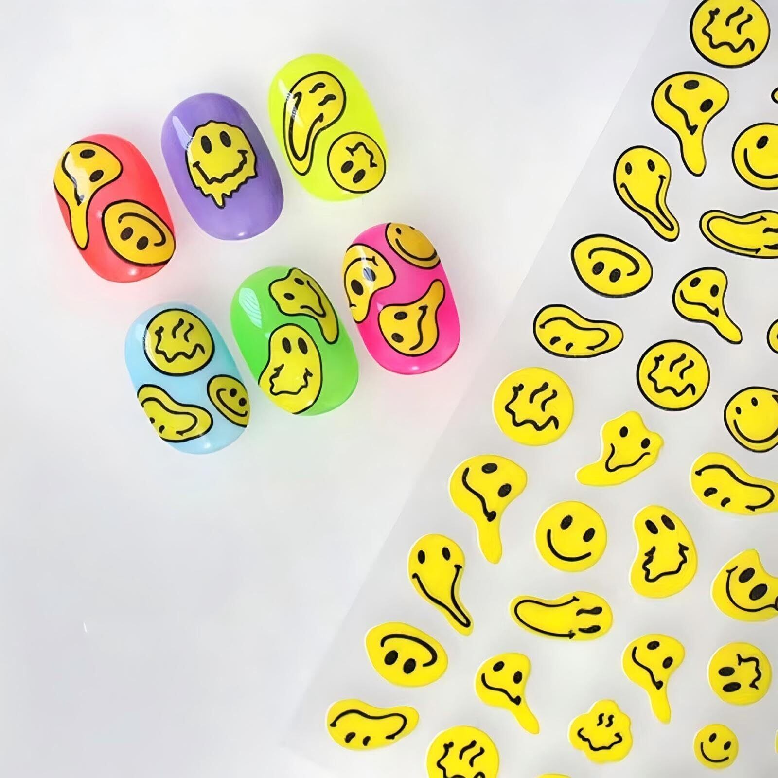 スマイリー ネイル アート ステッカー 新しいツイスト スマイリー ネイル アート ステッカー 落書き 楽しい 抽象的な スマイリー 自己粘着 ネイル アート ステッカー デカール 女性、女の子、子供、ギフト用 (3枚)