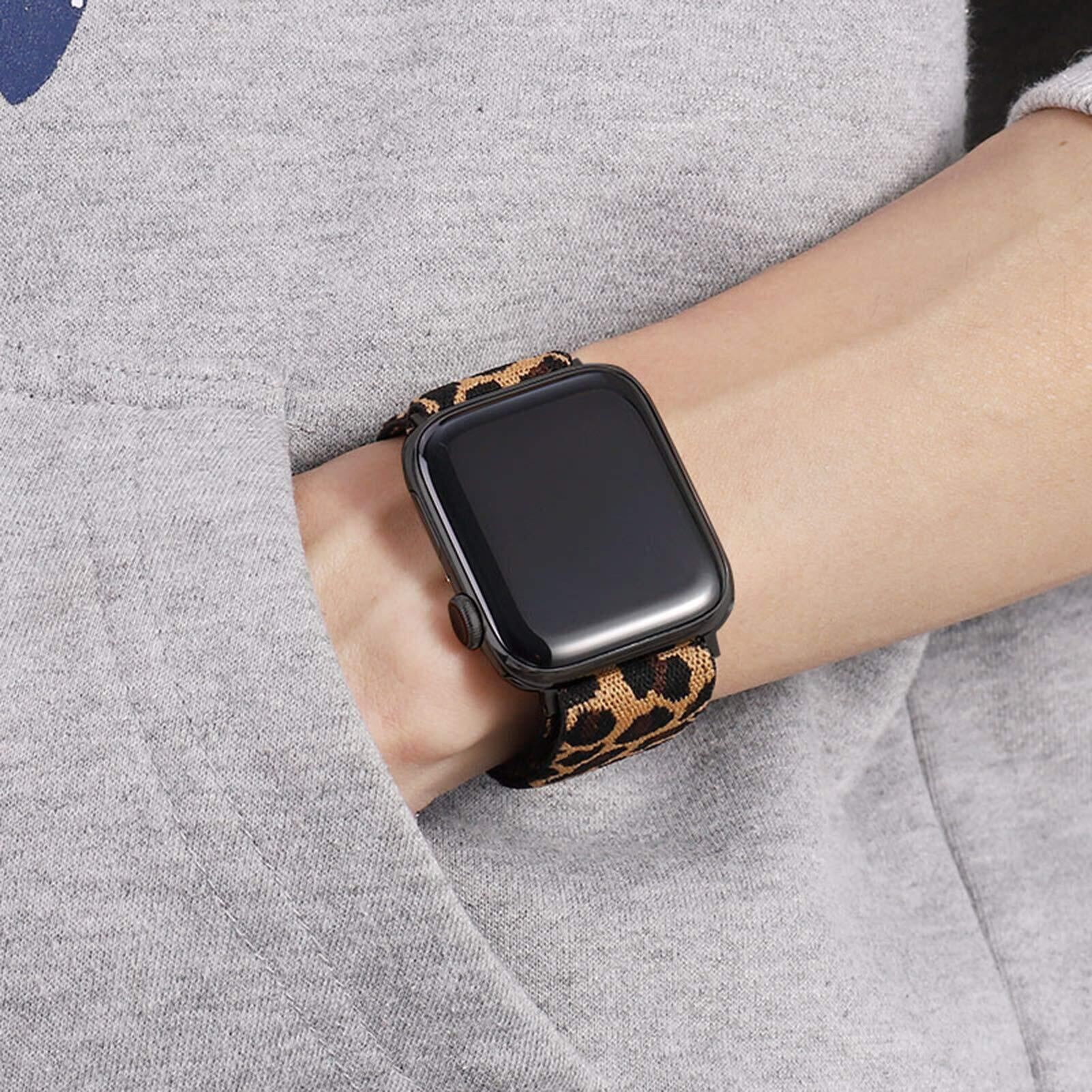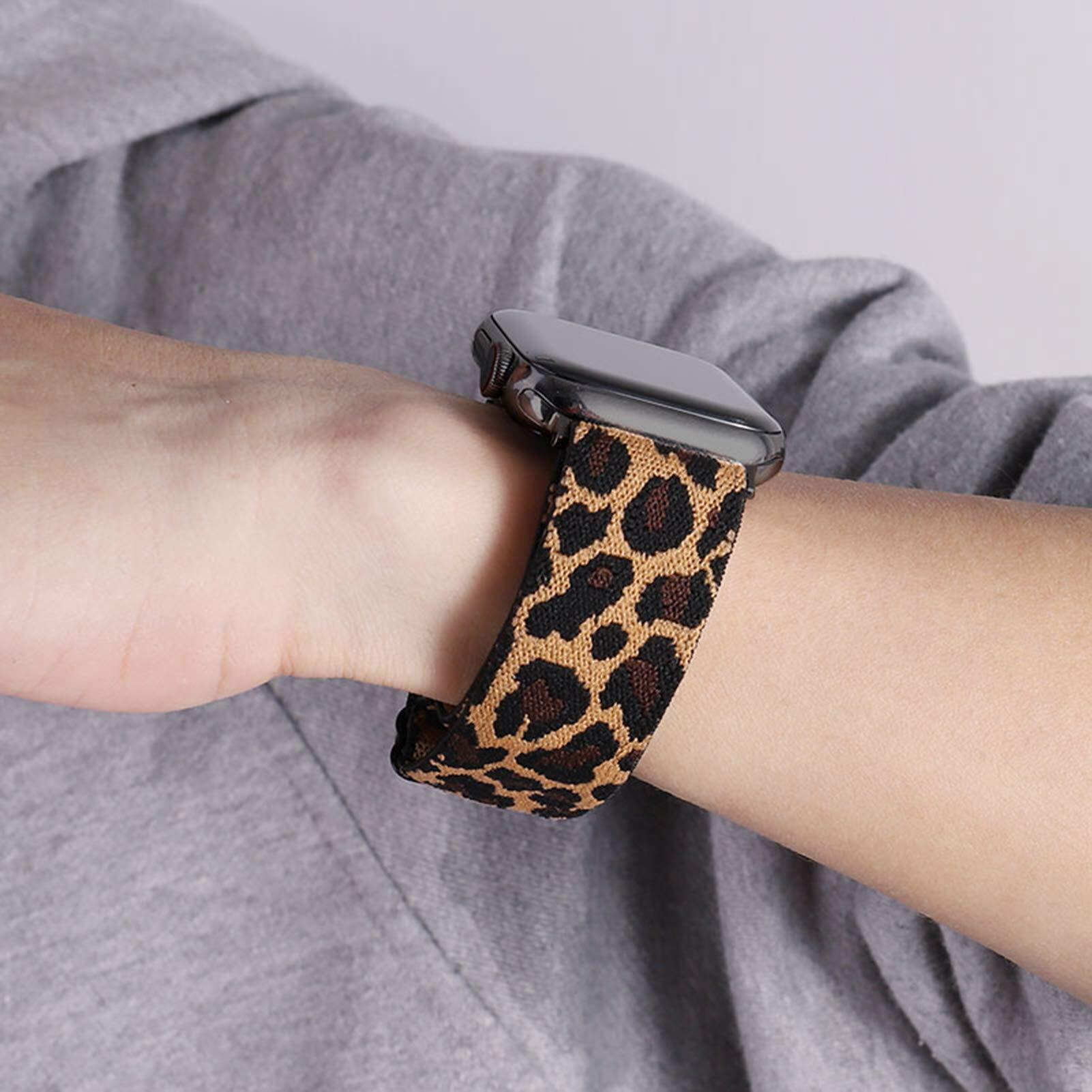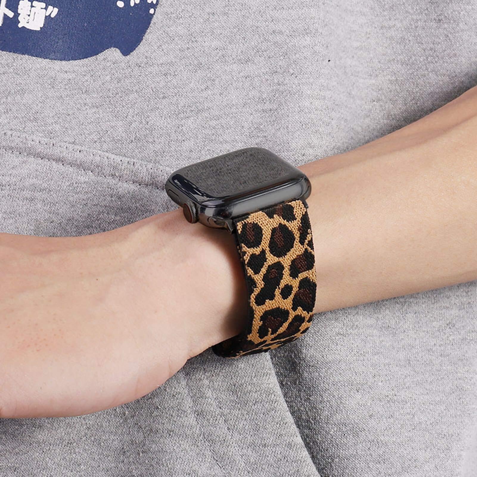 伸縮性ループバンド Compatible with Apple Watch 38mm 40mm 41mm 42mm 44mm 45mm 49mm 柔らかく心地よい軽量で 調節可能な弾性ナイロンベルト アップルウォッチシリーズ 8 7 6 5 4 3 SE Ultraに対応 (42mm 44mm 45mm 49mm, ヒョウ)