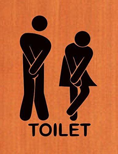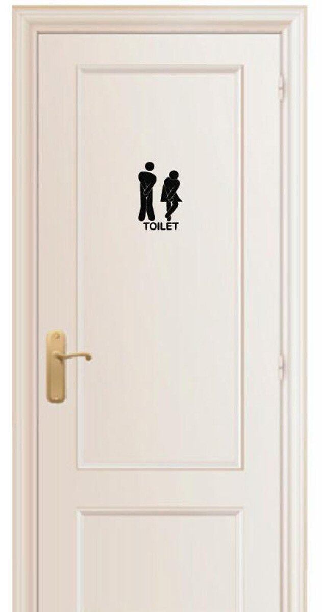 トイレ お手洗い Toilet 入口 表示 サイン sign ドア door おもしろ 漏れそう 「もう我慢できない」 シルエット ステッカー シール デカール 21×14cm ブラック | BASE SHOP